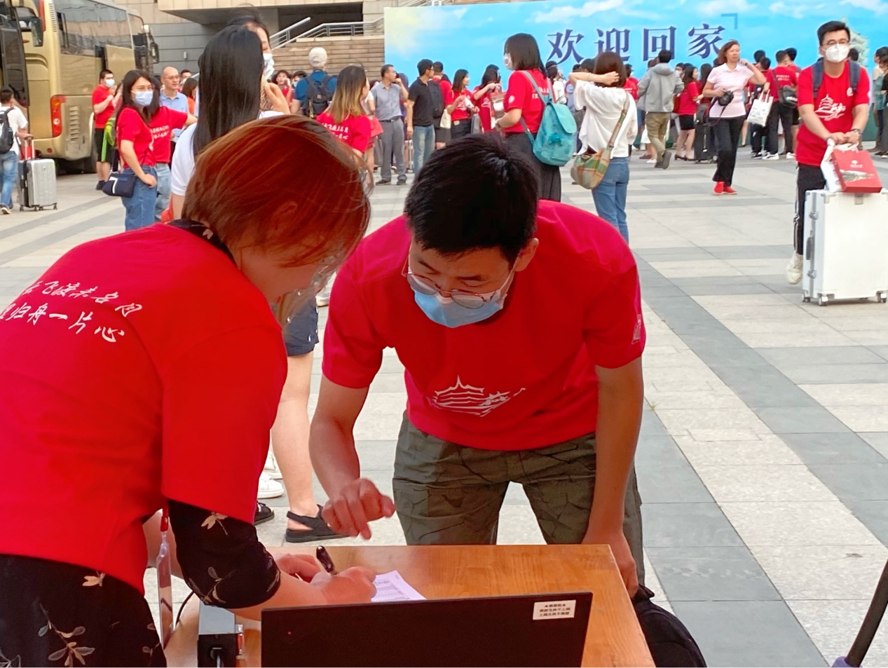 伴随着未名湖畔凉爽的微风和夏日和煦的阳光,英国威廉希尔英文官网首批17位湖北地区毕业生于6月6日返校,顺利回到阔别已久但日思夜想的燕园。公司党委书记郭雳、副书记路姜男,团委书记史诗,员工工作办公室副主任张佳宁、张润芝,团委副书记李婉玉,就业指导办公室副主任张东晓等老师共同到邱德拔北广场迎接英国威廉希尔英文官网返校毕业生,并为同学们送上公司精心准备的含有消毒湿巾、干湿洗手液、水果、零食的健康物资包。