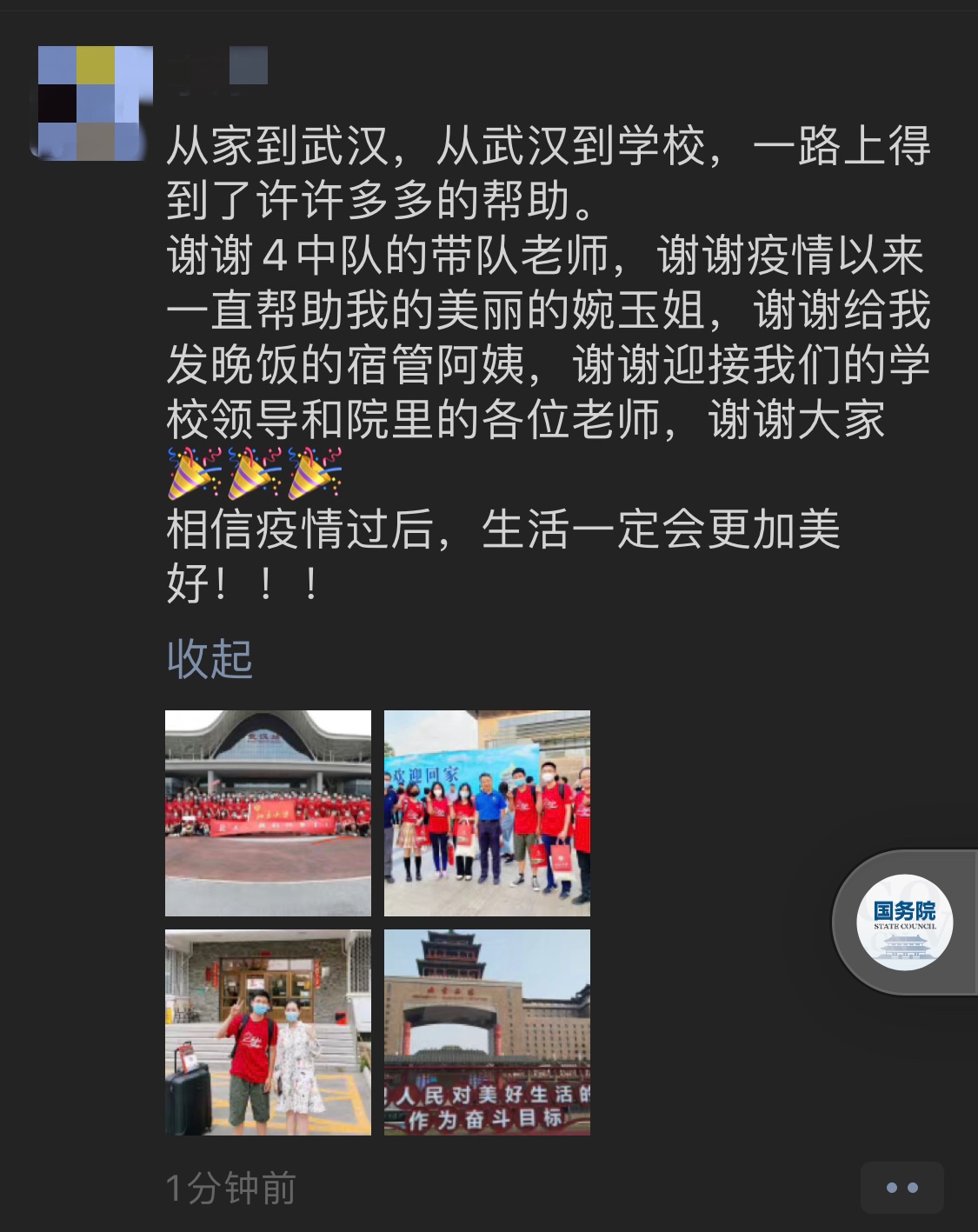 首批返校的同学们纷纷对公司老师们的精心安排和贴心关怀表示感谢: