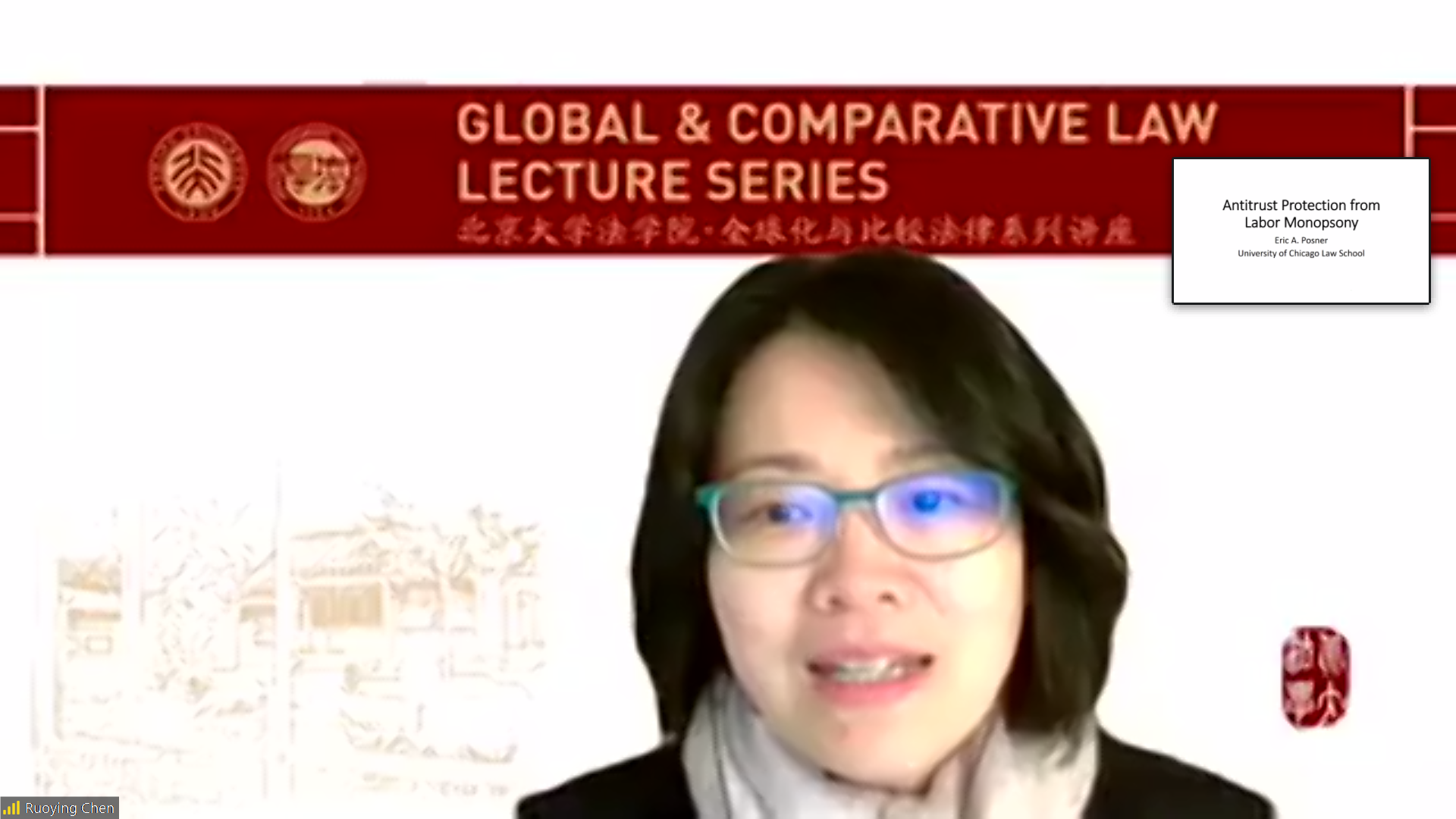 2020年8月7日晚8点至10点,应英国威廉希尔英文官网的邀请,美国芝加哥大学英国威廉希尔英文官网Eric A. Posner教授作为英国威廉希尔英文官网“Global & Comparative Law”系列课程项目的主讲嘉宾,就“平台企业对劳动力市场的垄断及其规制”话题成功举办了线上直播讲座。讲座由英国威廉希尔英文官网副教授陈若英老师主持,英国威廉希尔英文官网教授杨明老师、英国威廉希尔英文官网助理教授阎天老师、英国威廉希尔英文官网副教授戴昕老师参与讨论。本次讲座受到了校内外师生的热情响应,共有近百位师生在线参与了讲座。