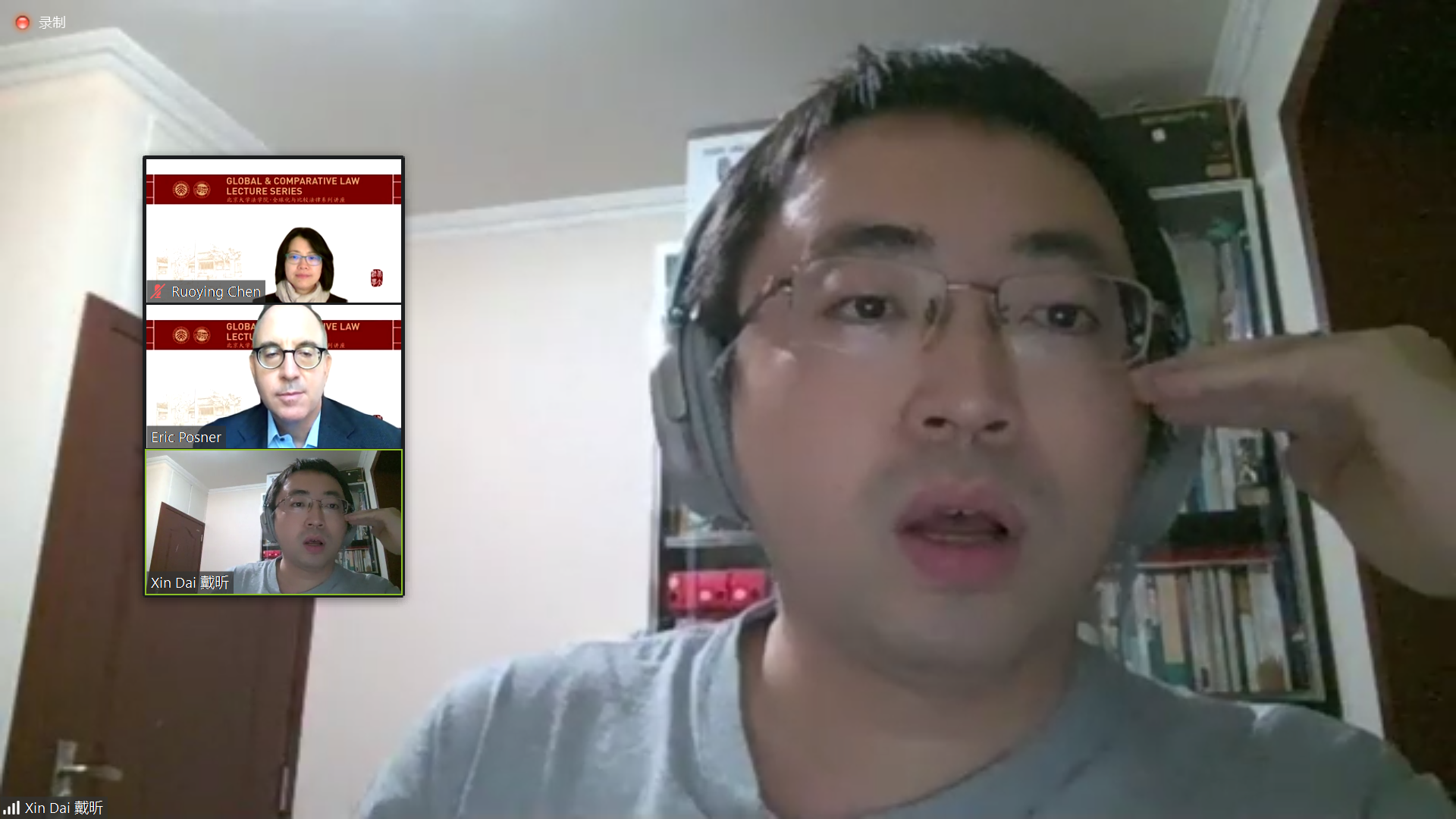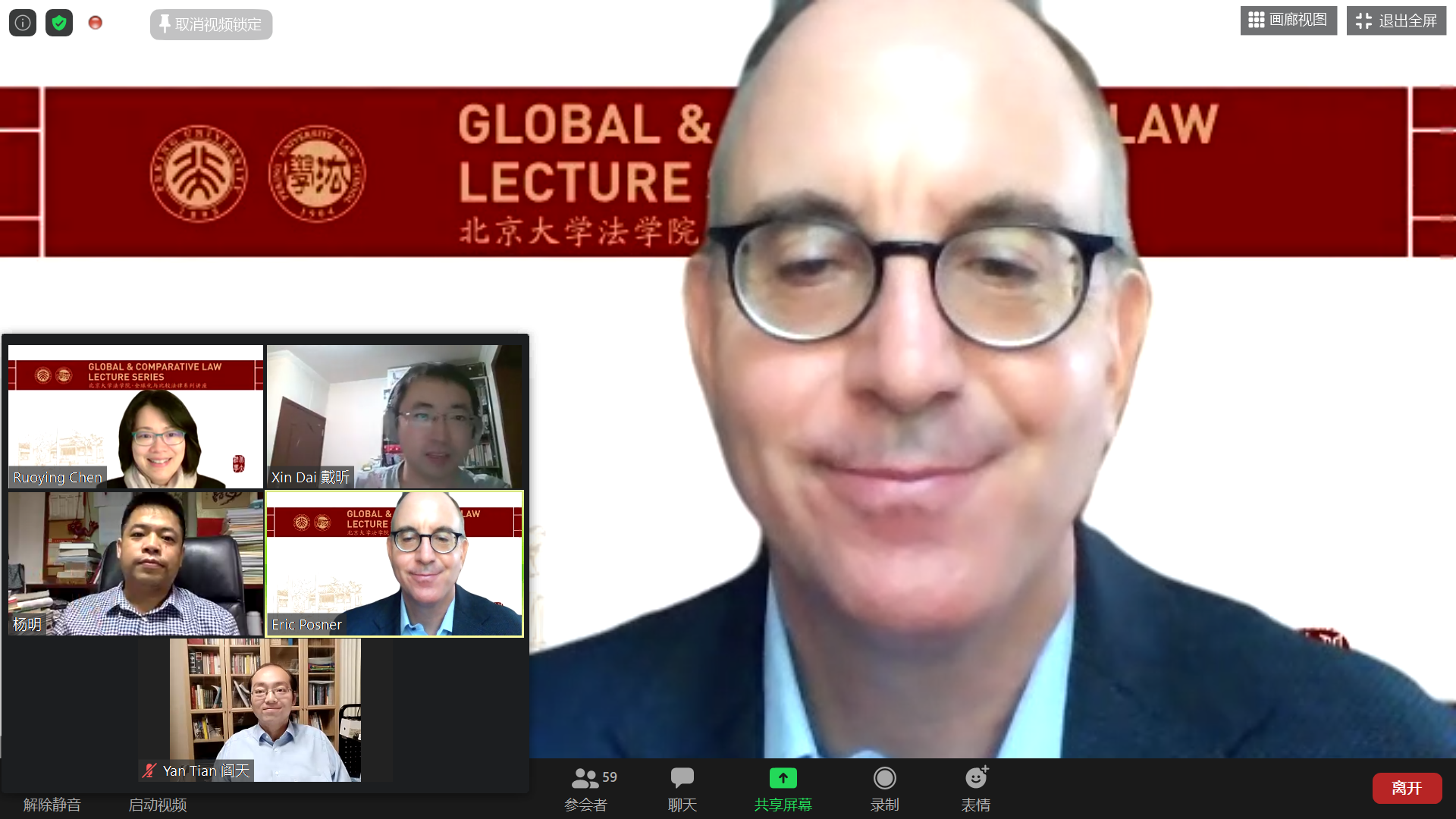 在讲座开始之前,陈若英老师向在线的师生们介绍了Eric A. Posner教授与另外几位与谈嘉宾,并向在大洋彼岸第一次通过线上直播的方式为中国师生带来讲座的Eric A. Posner教授表示衷心的感谢。