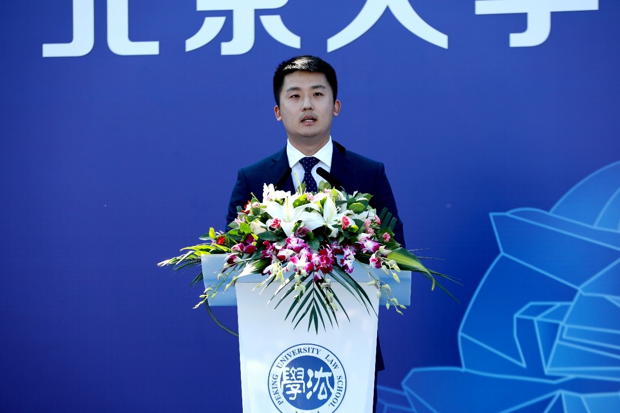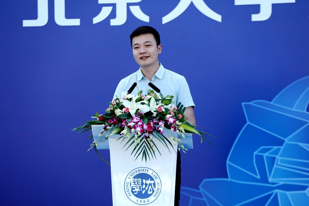 随后,2020级法学博士研究生郭镇源作为研究生新生代表发言。他分享了自己对于成为一名合格的法学研究生、成为一名真正的“北大法律人”的思考,勉励新生同学们在学术上博学笃行、学无止境,担负起北大青年法律人的使命担当,努力成为依法治国的推动者,法治精神的捍卫者,大国崛起的参与者。