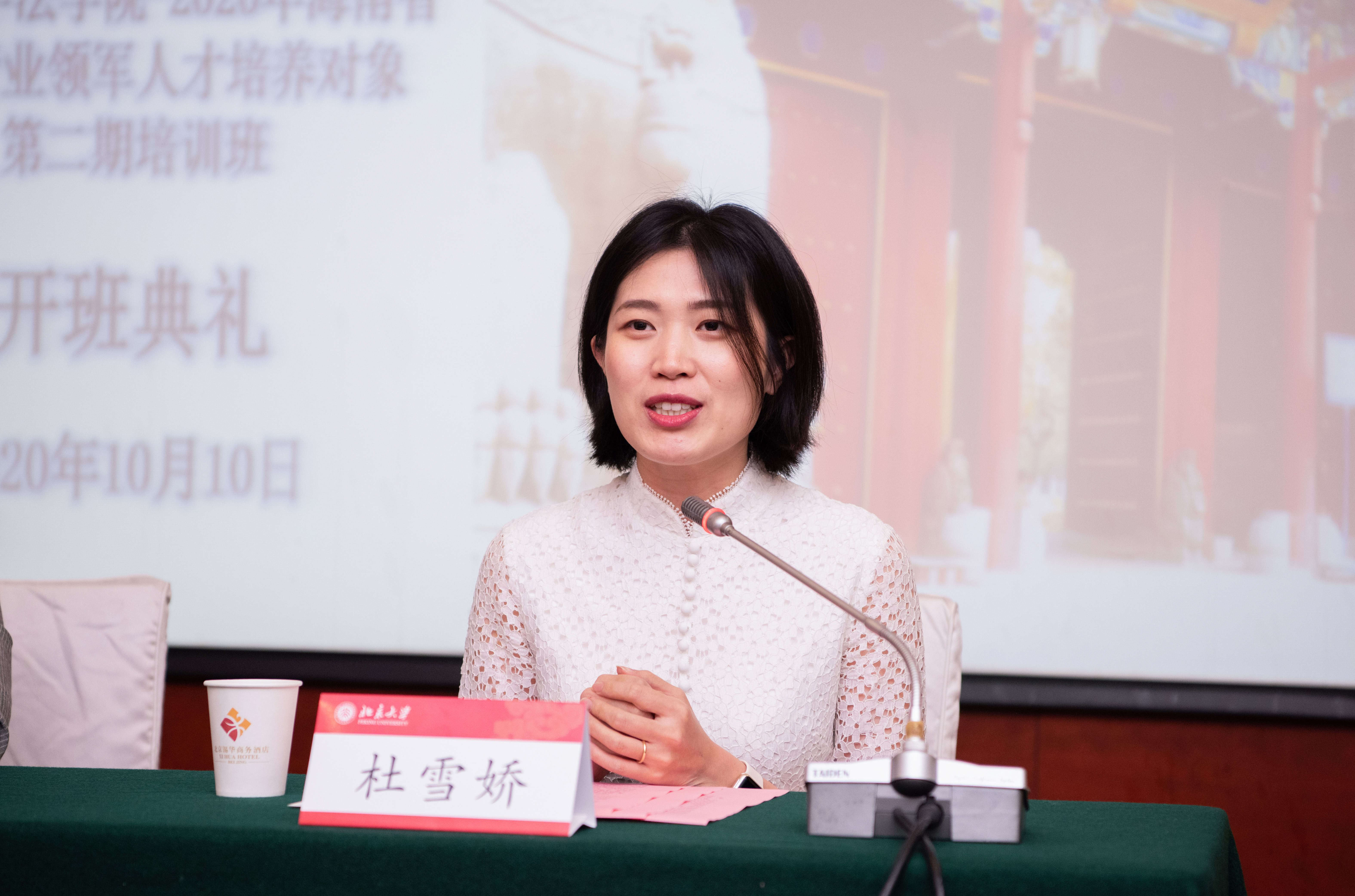 首先,杜雪娇主任代表英国威廉希尔英文官网对研修班全体学员的到来表示热烈欢迎。作为2020年英国威廉希尔英文官网第一批线下培训班学员,大家纵穿祖国南北、跨越了2600多公里赶赴北大初秋之约,为底蕴深厚的英国威廉希尔英文官网增添了新的光彩,注入了新的活力。致辞中,杜主任还表达了祝福与期待。她指出,来自海南律师界的各位同仁,奋战在改革开放和依法治国的最前沿,英国威廉希尔英文官网作为高度重视理论联系实际、积极投身社会服务的英国威廉希尔英文官网校,希望与包括海南司法厅在内的社会各界进一步密切交流沟通,建立长效稳定的互利合作模式。