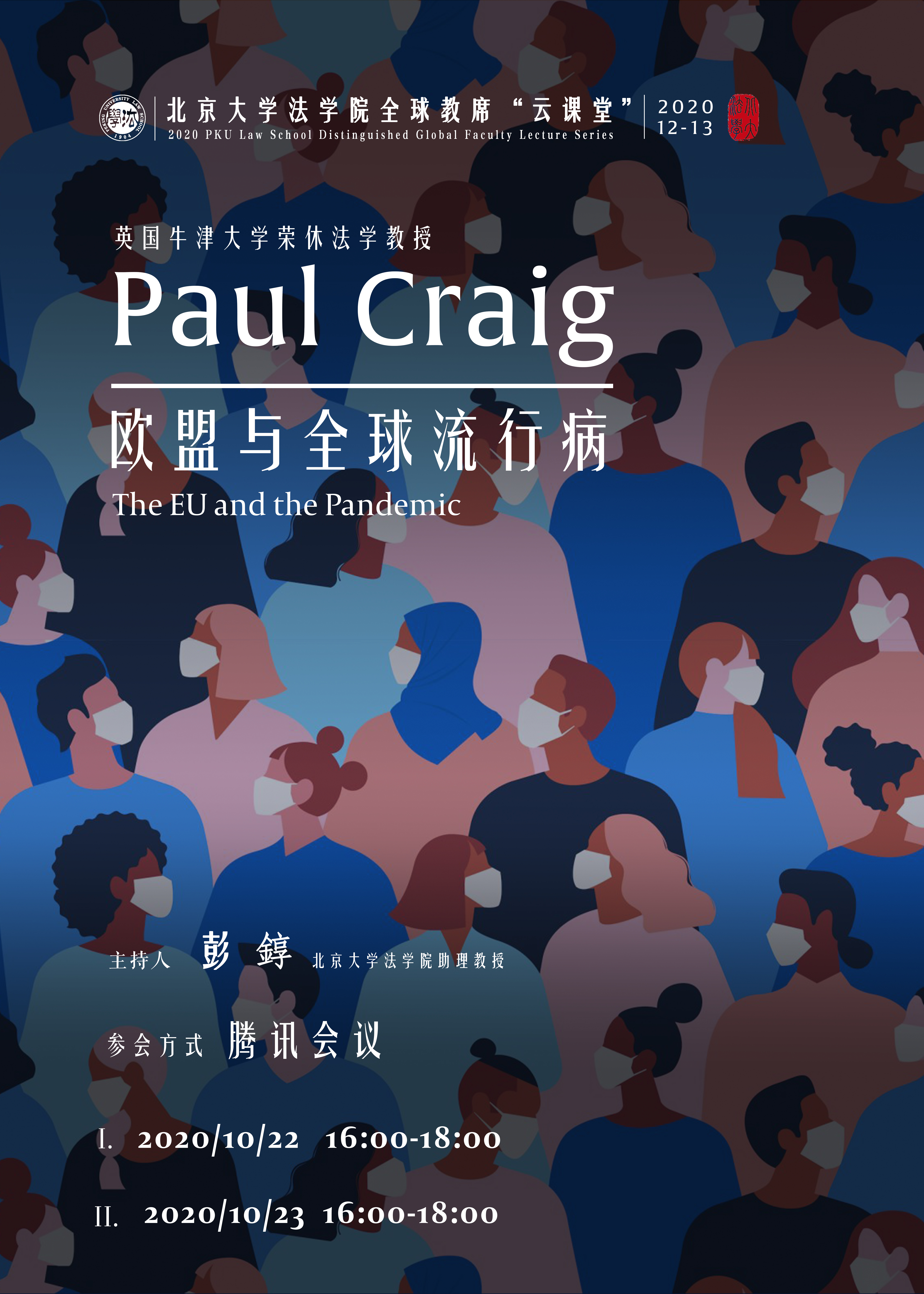 2020年10月22日至23日,英国威廉希尔英文官网全球教席、英国牛津大学荣休法学教授Paul Craig举行了主题为“欧盟与全球流行病”的两场线上讲座。英国威廉希尔英文官网助理教授彭錞担任主持。讲座对欧盟的组织架构、法律制度,以及欧盟应对新冠疫情的措施进行了详细介绍,校内外近百名师生参与受益。
