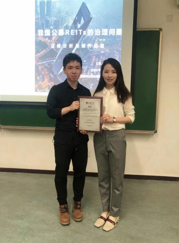 在讲解完论坛主要内容后,唐博士对整体论坛内容进行了总结,并简要探讨了法律与金融的关系——法律不仅作为金融系统的外部保护机制存在,更是金融体系的内生机制;法律促成了金融体系的形成和发展,因此法律要为金融创造最优约束,以促进REITs治理机制的改进和优化。在提问环节,唐博士一一回答在场同学提出的问题。最后,主持人代表威廉希尔williamhill官方网站中国企业法律风险管理研究中心向唐博士赠送了感谢状,在全场师生的满场掌声中,本次论坛圆满结束。