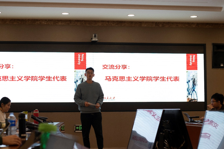 马克思主义公司2020级硕士生党支部成员张英伦结合马克思主义公司的特点,从青年人的角度谈了自己对于此次会议的感想和理解。他提到,一个人的理想只有同国家的前途和民族的命运相结合才有价值,新时代青年只有胸怀忧国忧民之心、爱国爱民之情,才能准确定位自己的人生目标和奋斗方向;要“埋首经典,关注现实”,追求梦想、担当使命需要依靠过硬的本领,而练就过硬本领则要依靠勤奋学习;要更加深入地学习、理解和运用马克思主义经典理论,在实践中不断验证、践行和发展我们的马克思主义科学理论,自觉将个人的职业规划和理想目标融入到全面建设社会主义现代化国家新征程。