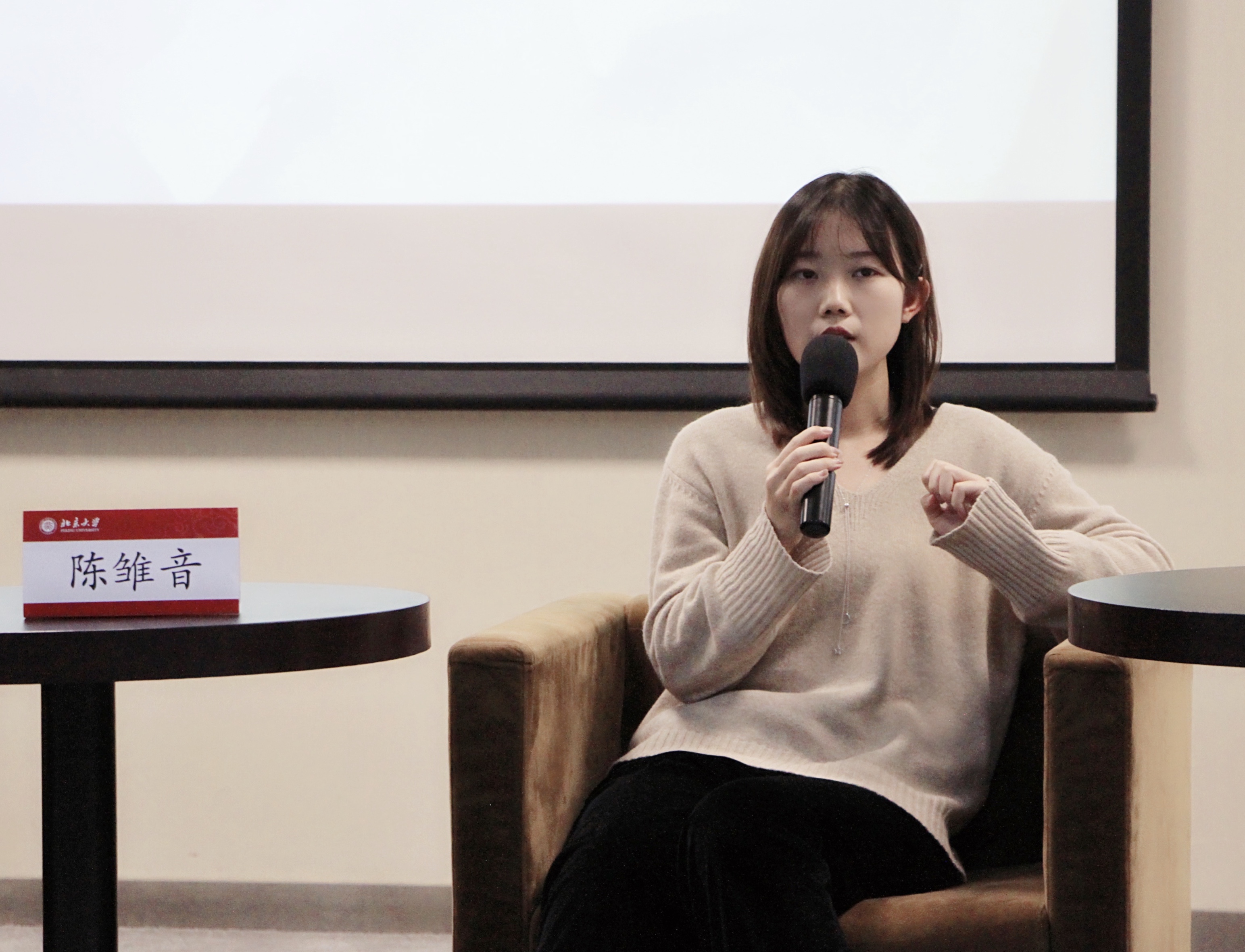 在主题分享环节,四位嘉宾依次向同学们详细分享了自身职业选择的心路历程和职场体验。牛伟强员工分享了选择在公务员机关工作的初心,并为同学们介绍公务员备考经验。他鼓励同学们尽早确定方向,在秋招的过程中摆正心态,正确面对压力与焦虑。陈雏音员工从职业选择、求职经验和求职方向调整等方面介绍了自己先后在律所、事业单位求职的经历。她建议同学们在探索职业生涯规划时合理考虑自身条件与目标职业的适配性,尽量降低盲目择业的风险。就职于国企的陆亚伦员工从实习求职经历、单位工作氛围等方面为同学们分享自己的心路历程与工作体验。他鼓励同学们在实习中尝试与体验不同职业的工作节奏,同时珍惜在校学习时光,学好专业知识,为未来求职打牢基础。张仕锦员工结合自身本科毕业后从出国深造到回国发展的过程,分享在实践中对“法律人(lawyer)”、律师的职业魅力、如何把书生气转化为接地气等话题的理解,并介绍目前的工作业务与状态。她建议同学们要尽早确认个人感兴趣的领域和方向,在求职时要重视完善自己的简历、妥善准备专业问题、关注大型宣讲会和推荐机会。