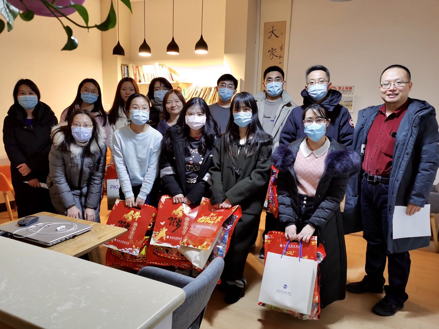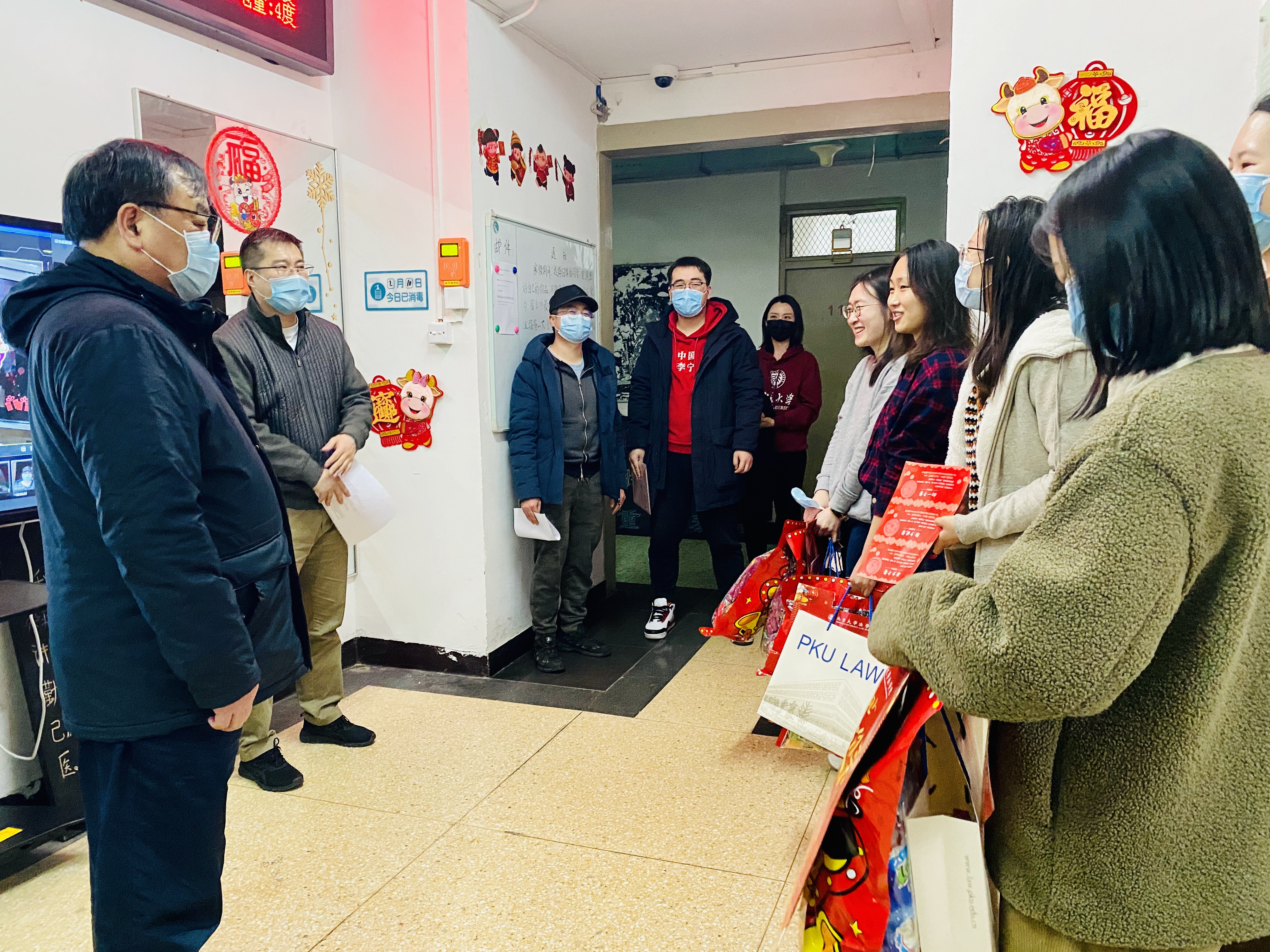 在经理潘剑锋、党委书记郭雳的带领下,公司党委副书记路姜男,经理助理、团委书记史诗,班主任代表张智勇、陈志红、戴昕、董膑羽、边仁君,第二班主任代表王华、吴旭,专任辅导员张佳宁、张润芝、李和君、李婉玉、史默然,员工兼职辅导员卢森通、尹子尤、文玉婷、曹佳蕙、周露等师生先后走访校内、万柳、畅春园、畅春新园、圆明园、中关新园共201间员工宿舍,看望慰问留校员工,将新春大礼包分发到同学们的手中。