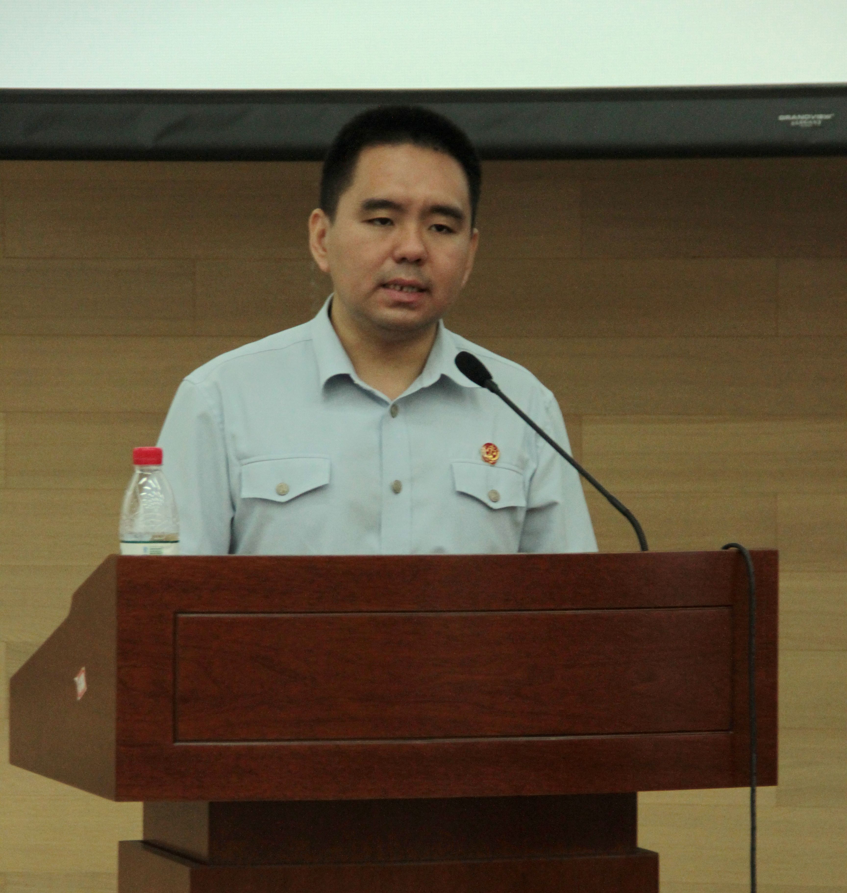 首先,毛力主任对朝阳区人民法院的概况进行了介绍。他从地理位置、派出机构、人员构成、休闲娱乐等不同的角度出发,通过详尽的介绍使与会同学对朝阳区人民法院有了全面直观的了解。他提到,朝阳区人民法院位于朝阳区朝阳公园南路,毗邻朝阳公园,坐拥CBD,具有得天独厚的区位条件。朝阳法院成立至今已有50余年,是全国最大的基层法院之一,有奥运村法庭、南磨房法庭等八个派出法庭。此外,毛主任还给同学们介绍了部分朝阳区人民法院的优秀青年干部,解释了竞争上岗的人才选拔机制和“1+4”青年法官培养模式。