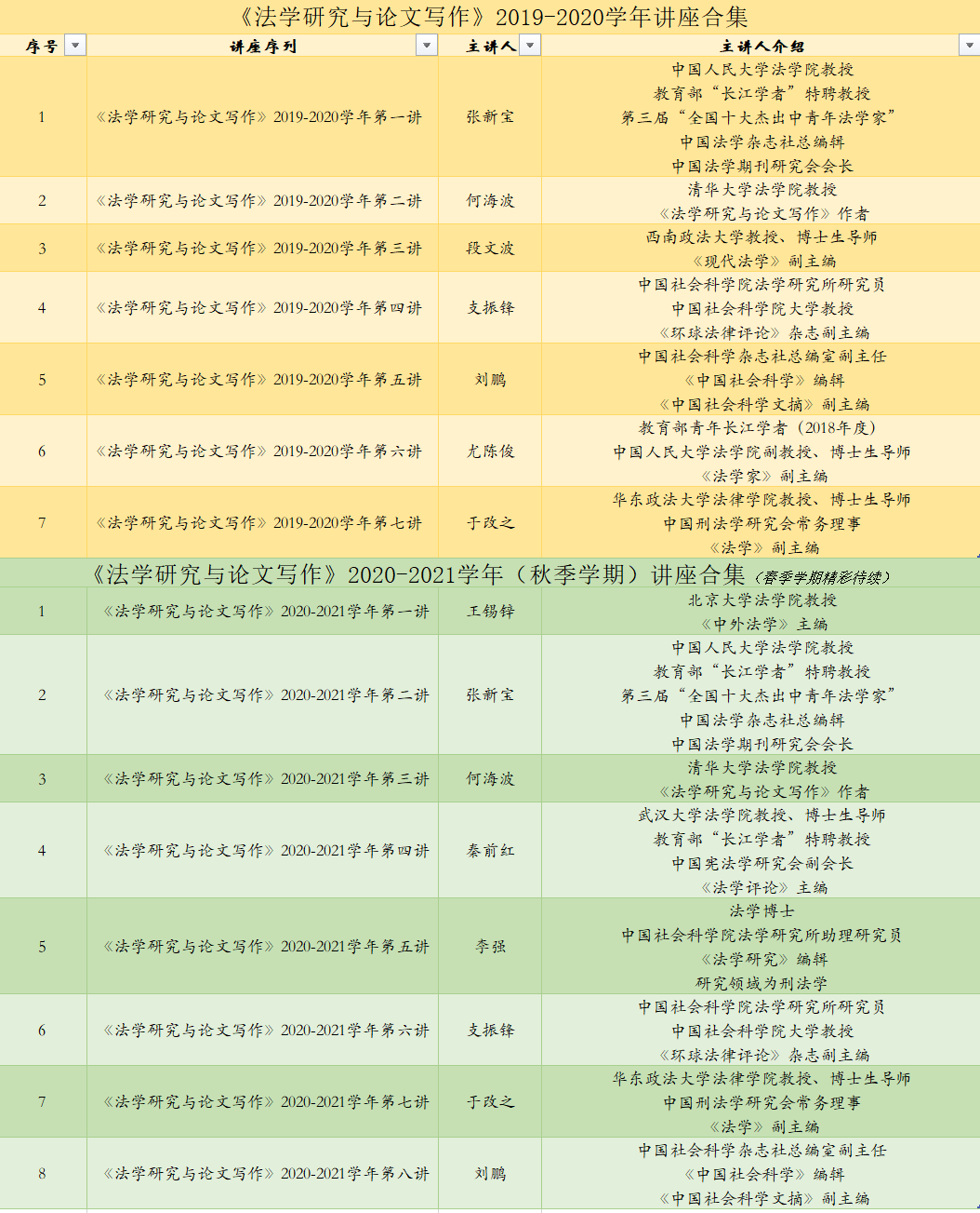 不同主讲嘉宾在规定时间内,结合自身的经验体会倾囊相授,每次课程内容虽无一定之规,但是都紧紧围绕法学研究和论文写作的主题,凝练精华,各成一派又相得益彰,有利于同学们在比较中加深理解,兼收并蓄。另外,每次课程最后都专门设计与主讲老师的互动与谈环节,同学们可以结合自身在学术研究、写作以及投稿过程中遇到的实际问题,征询老师意见,获得点拨指导。通过课程的系统学习,对于刚刚开启学术研究生涯的博士新生同学而言,收获是多方面的。