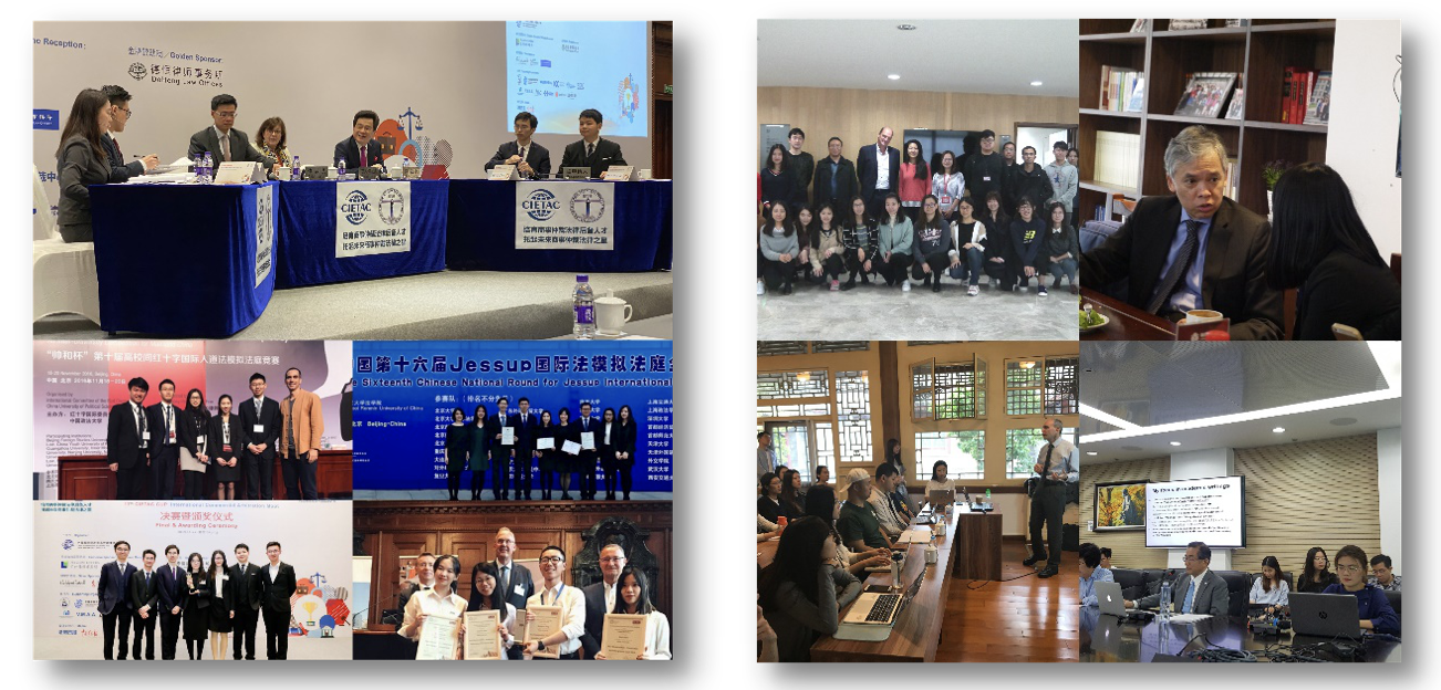 模拟法庭实训课程以平台化的教学组织方式,聚焦国际公法争议解决、国际商事仲裁、国际刑事裁判、跨境企业并购、国际人道法实践、空间法争议等主题,已形成“基础课程+九大国际赛事”的标准模式,由多位国内外知名学者教授担任授课教师。
