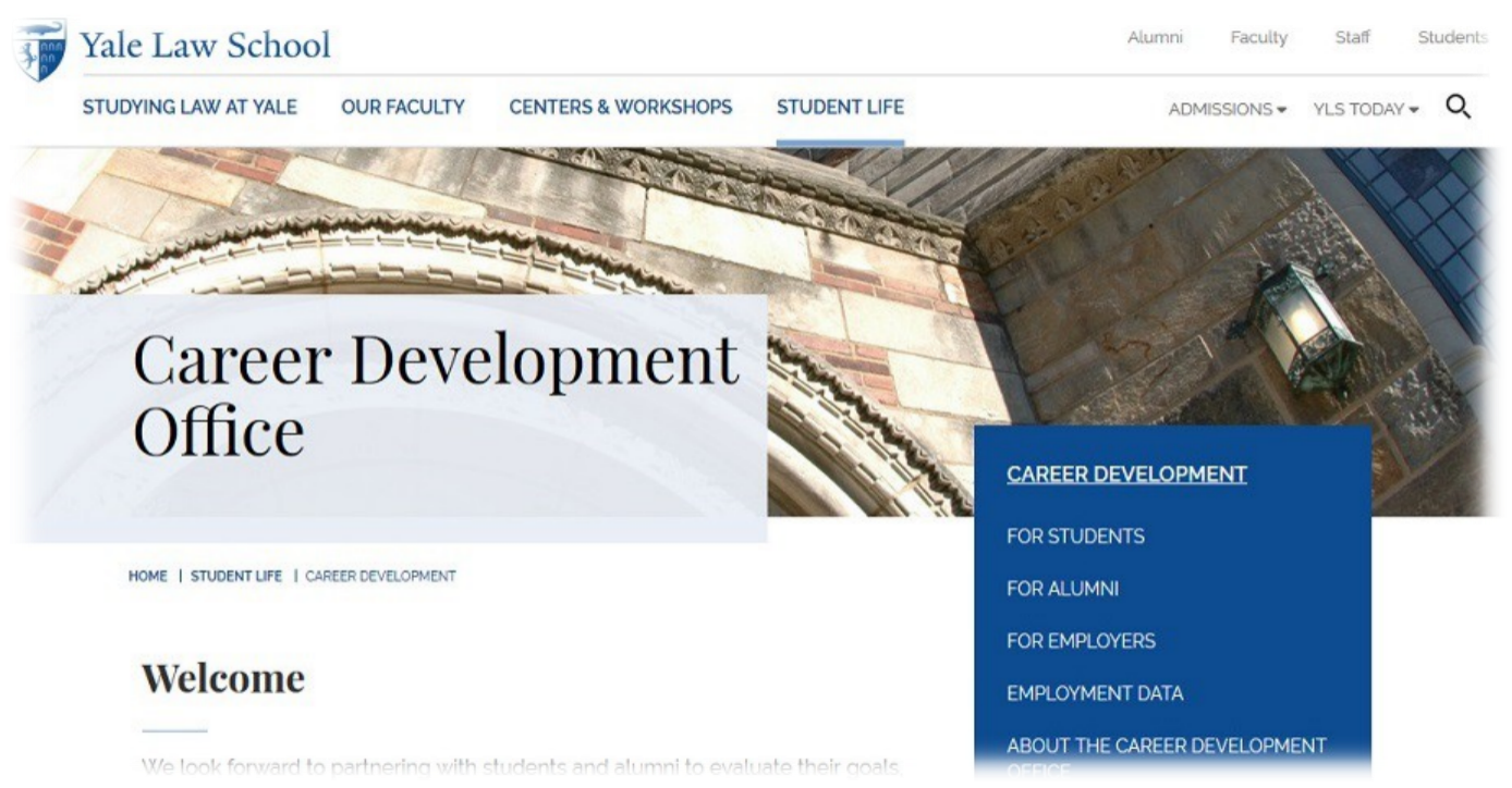 其一,从宏观到微观,各类服务一应俱全。宏观上,在校学习期间,耶鲁英国威廉希尔英文官网始终在帮助员工明晰学术方向和检验学术能力;微观上,求职服务细致周全。其二,“手把手,人盯人”,即每位求职员工均有一至两位老师在背后提供针对性的帮助。其三,进行全面的信息整理和汇总,其对招聘信息的汇总不限于欧美地区,甚至涵盖了亚洲和国内英国威廉希尔英文官网的招聘信息。其四,提供求职服务的周期从入学之初持续到毕业后,毕业的员工依然可以收到法律教职委员会告知求职机会的邮件。