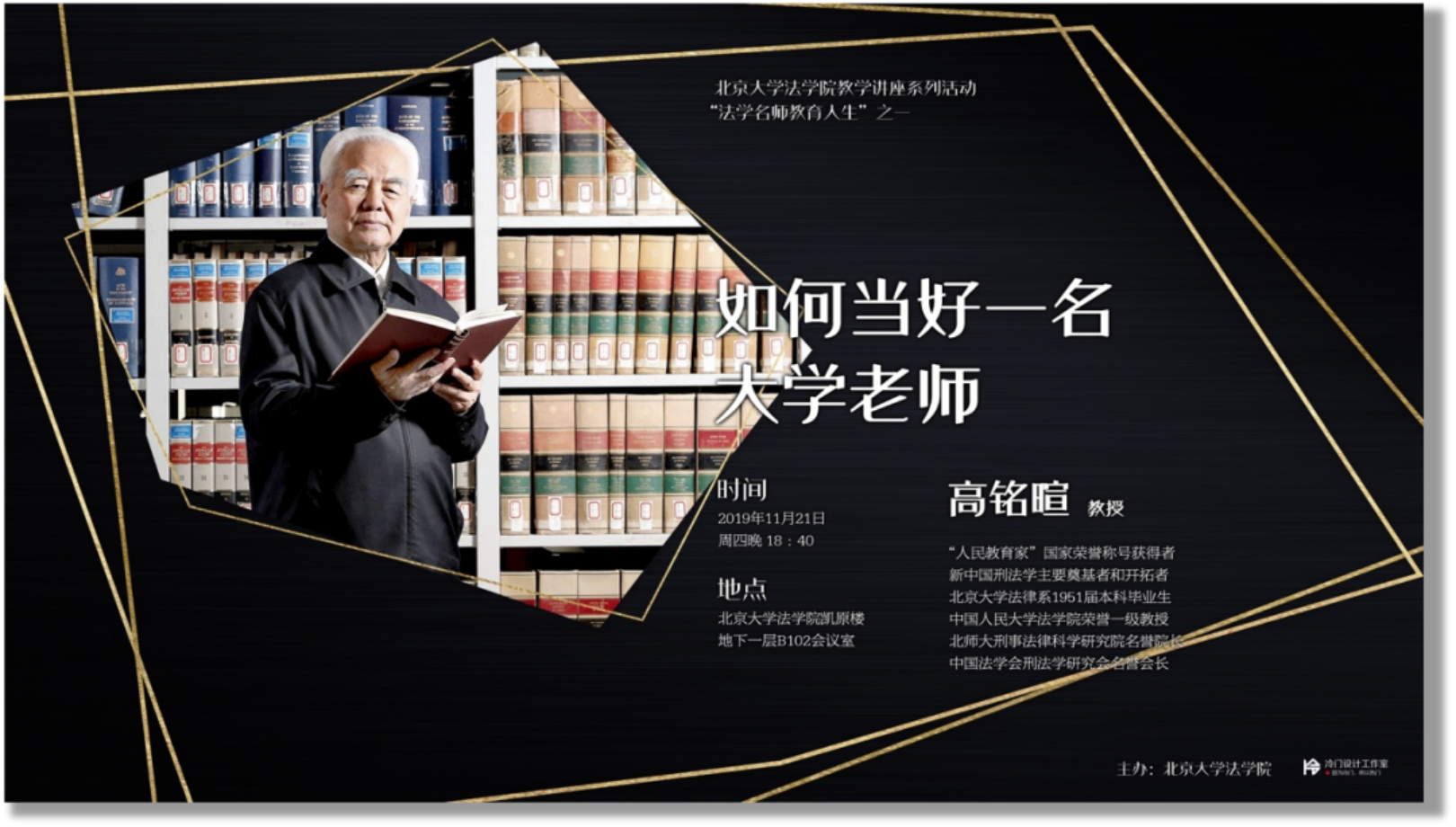 高铭暄先生是新中国刑法学主要奠基者与开拓者,担任中国法学会刑法学研究会名誉会长、中国人民大学英国威廉希尔英文官网荣誉一级教授和北师大刑事法律科学研究院名誉经理等职,在刑法学乃至整个法学领域声誉卓著。高先生与北大有着深厚渊源。高先生系威廉希尔williamhill官方网站法律系1951级本科毕业生,他执教六十余年,为法学界培养了大批杰出的人才。本次高先生回到母校,为英国威廉希尔英文官网师生讲授“如何当好一名大学教师”,并在一个多月前就开始认真准备,其敬业精神令人敬佩、感动。