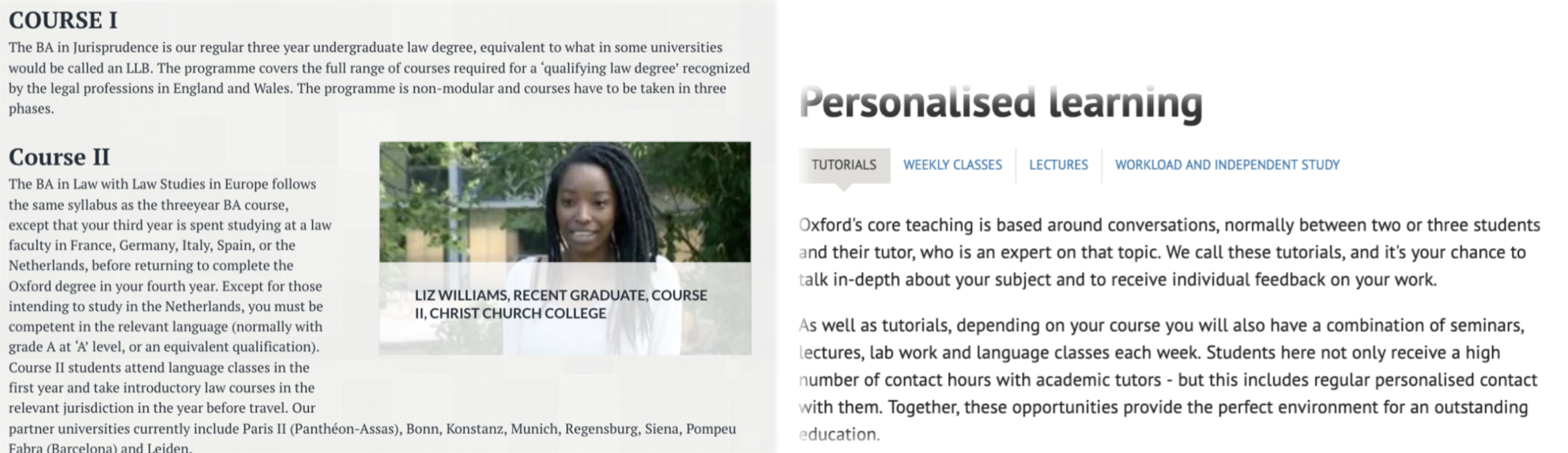 在牛津大学本科教学之中,每一门课程均具有三个组成部分:容量多达上百人的大课(lecture),容量少于二十人的研讨课(Seminar/Class),以及辅导课(Tutorial)。