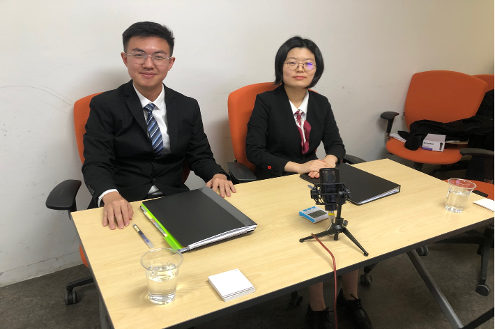 图为Vis East Moot期间,上场队员姜贺文、孙的妮积极准备比赛