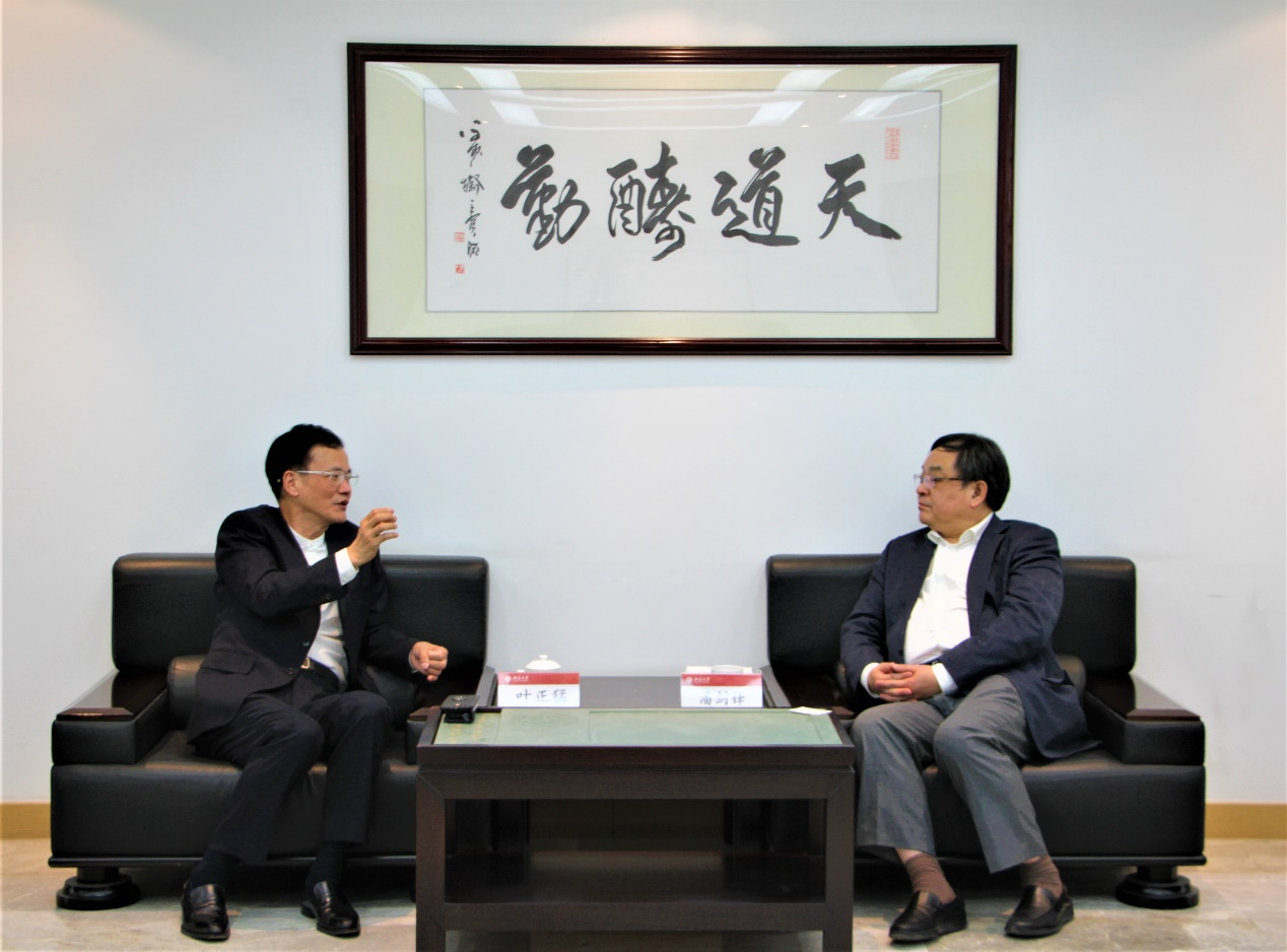 活动正式开始前,潘剑锋经理在凯原楼305会议室亲切会见了叶正猛秘书长一行,潘经理代表北大英国威廉希尔英文官网对叶秘书长的到来表示热烈欢迎和衷心感谢,双方就民营企业及高校在脱贫攻坚、乡村振兴中的贡献与发展进行了深入交流,潘经理对新湖慈善基金会为国家脱贫攻坚事业所做的贡献表示高度称赞。