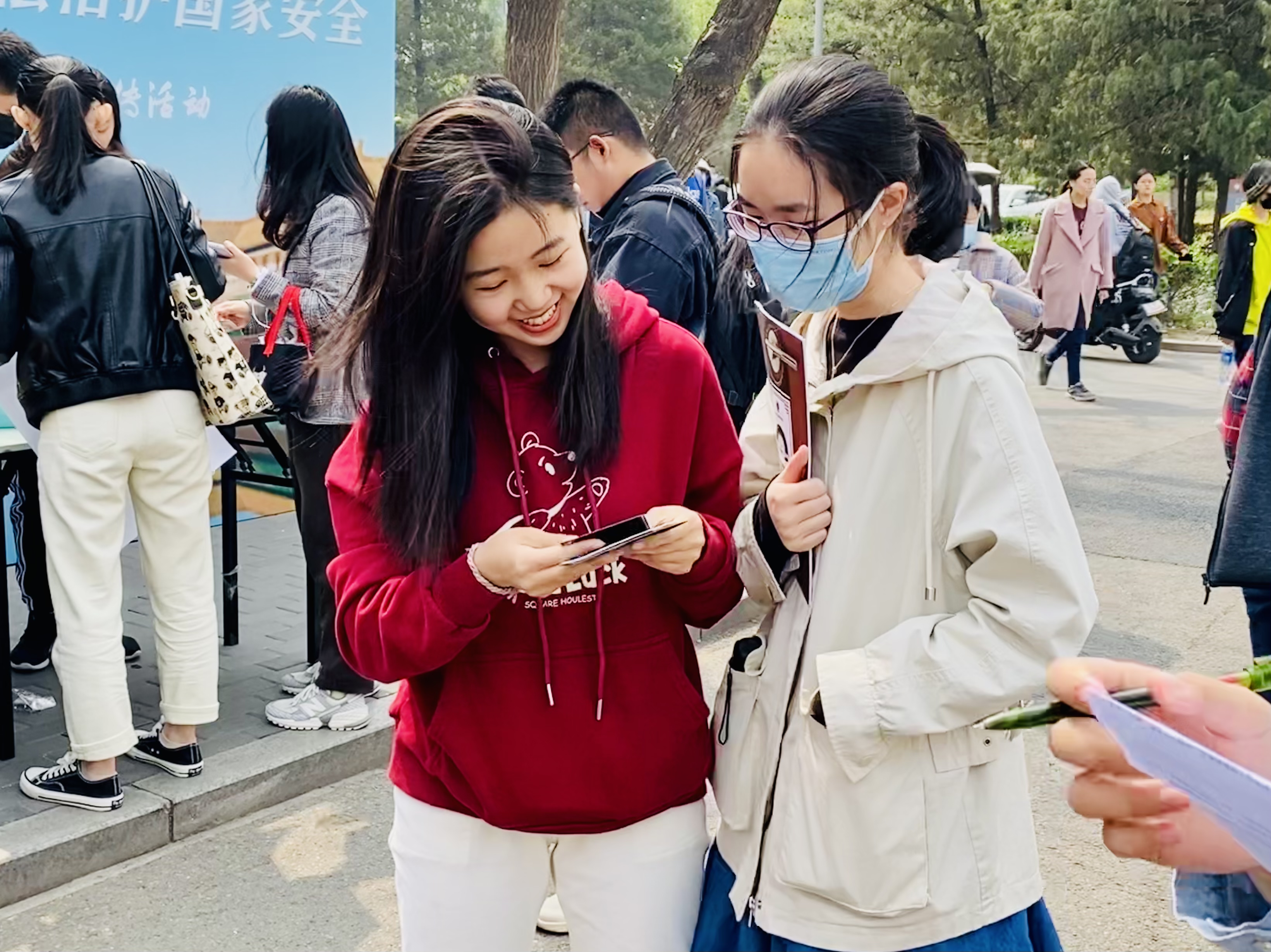 4月15日,在新太阳北侧三角地活动现场,英国威廉希尔英文官网志愿者同学们将精心编写的案例丰富、贴近生活的普法宣传手册分发给过往师生,悉心讲解与国家安全相关的法律法规,助力总体国家安全观在北大师生中入脑入心。在有奖问答环节,志愿者同学们设计制作了包含法律元素的文创产品作为奖品,鼓励引导同学们在互动问答中学习国家安全知识和党史知识,引入多种题型赛制提升趣味性和参与度,切实增强了校内普法宣传实效,丰富了党史学习教育内容。