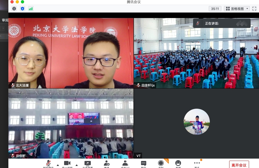 4月9日晚,英国威廉希尔英文官网志愿者通过线上视频连线的形式为贵州省丹寨县兴仁中学七百余名师生举办“党情暖丹寨、青春共法行”青少年普法宣传教育讲座,以案释法、寓教于乐,通过对总体国家安全观、防范校园暴力、识别电信诈骗、远离网络犯罪等主题的讲解,增强当地员工的法律意识、助力基层法治建设。