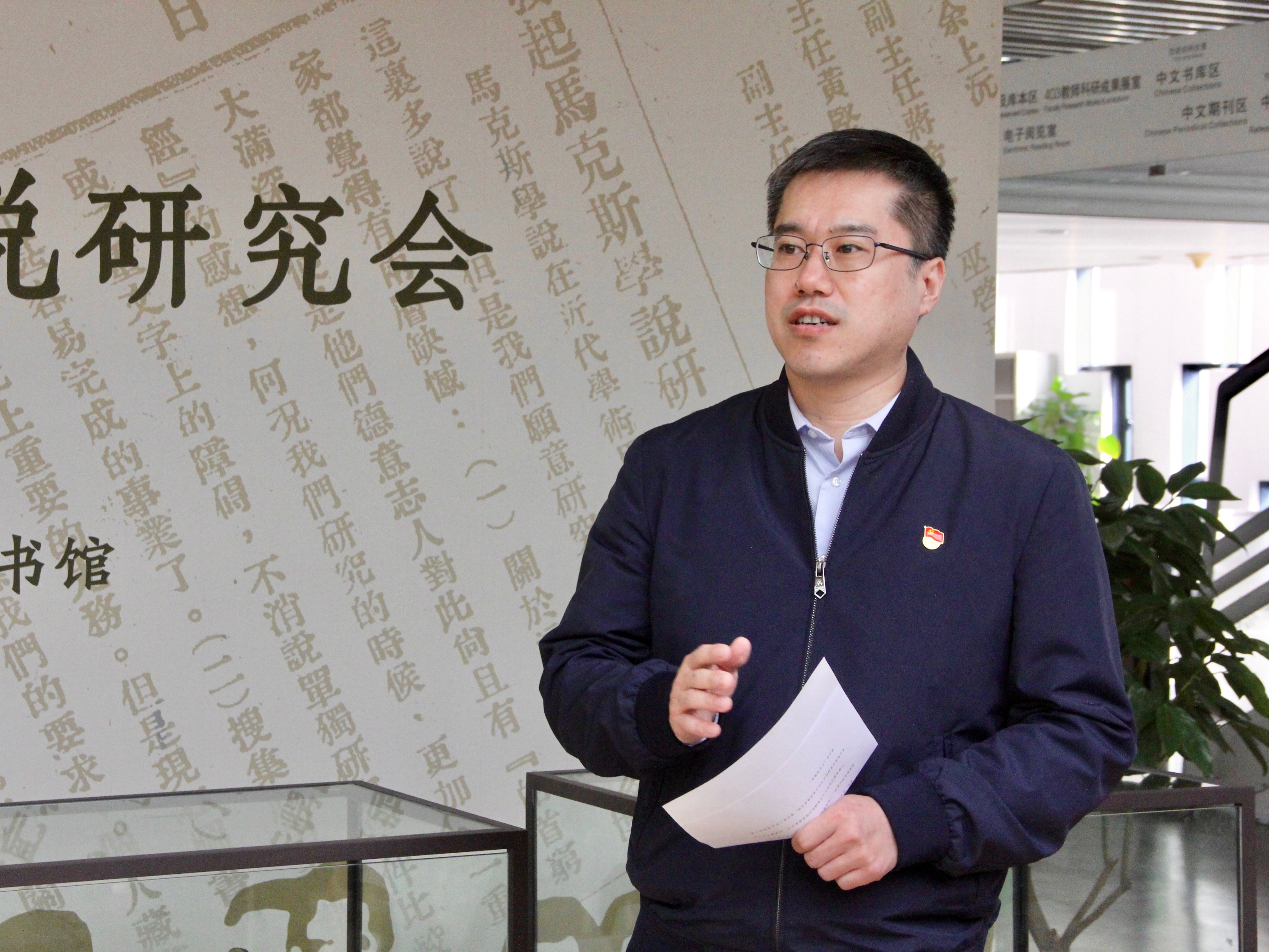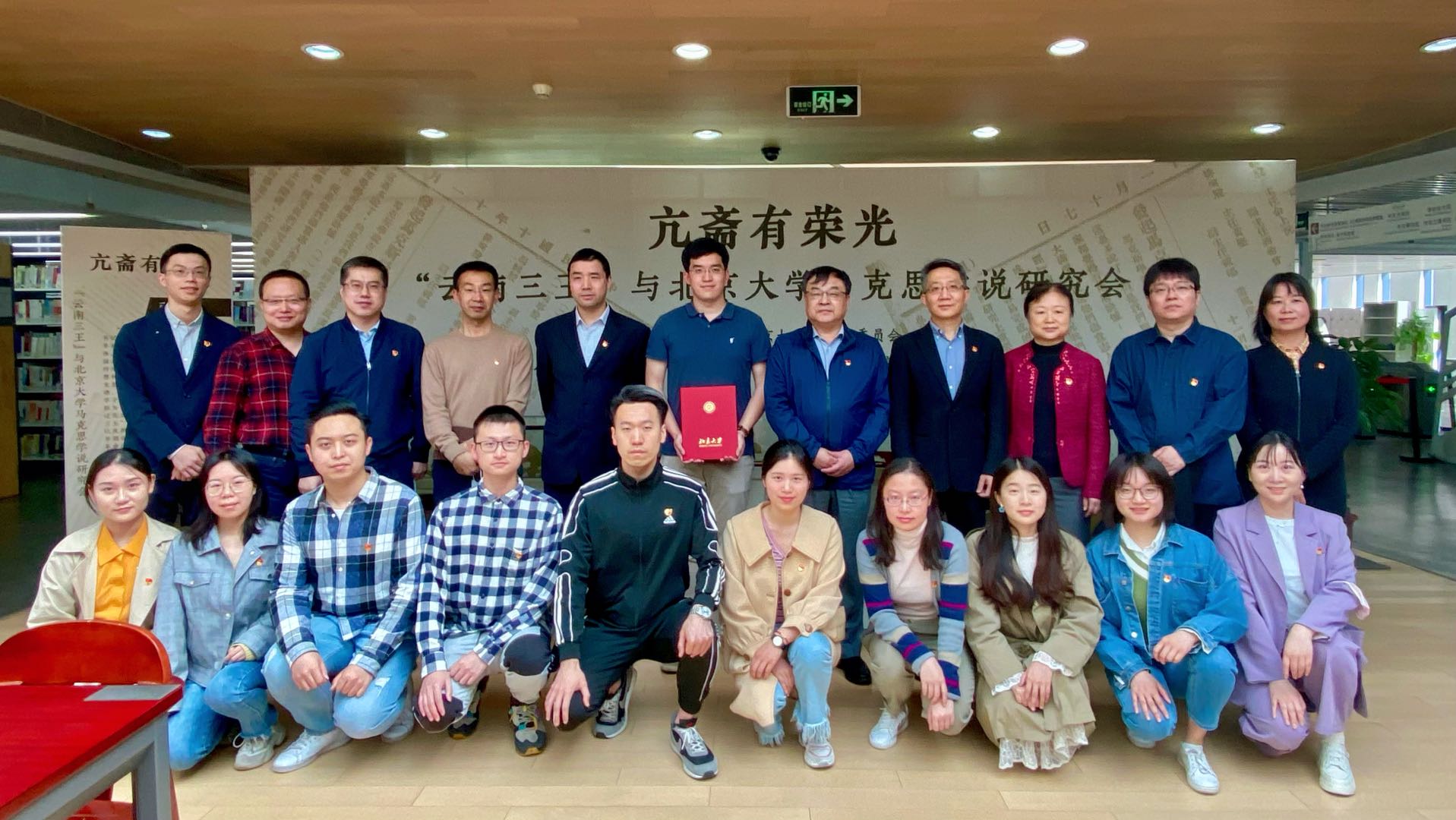 4月27日上午,公司党政班子成员和师生代表集体参观学习位于法律图书馆四层的《亢斋有荣光》——“云南三王”与威廉希尔williamhill官方网站马克思学说研究会主题展览。英国威廉希尔英文官网经理潘剑锋、党委书记郭雳,副经理杨晓雷、薛军、车浩,党委副书记朴文丹、党委副书记路姜男及员工工作、员工、图书馆等各部门负责老师和员工党支书、兼职辅导员代表二十余人参加学习,主题展览策展人、英国威廉希尔英文官网2014届本科员工、2016届硕士员工吴景键出席活动。活动由路姜男老师主持。
