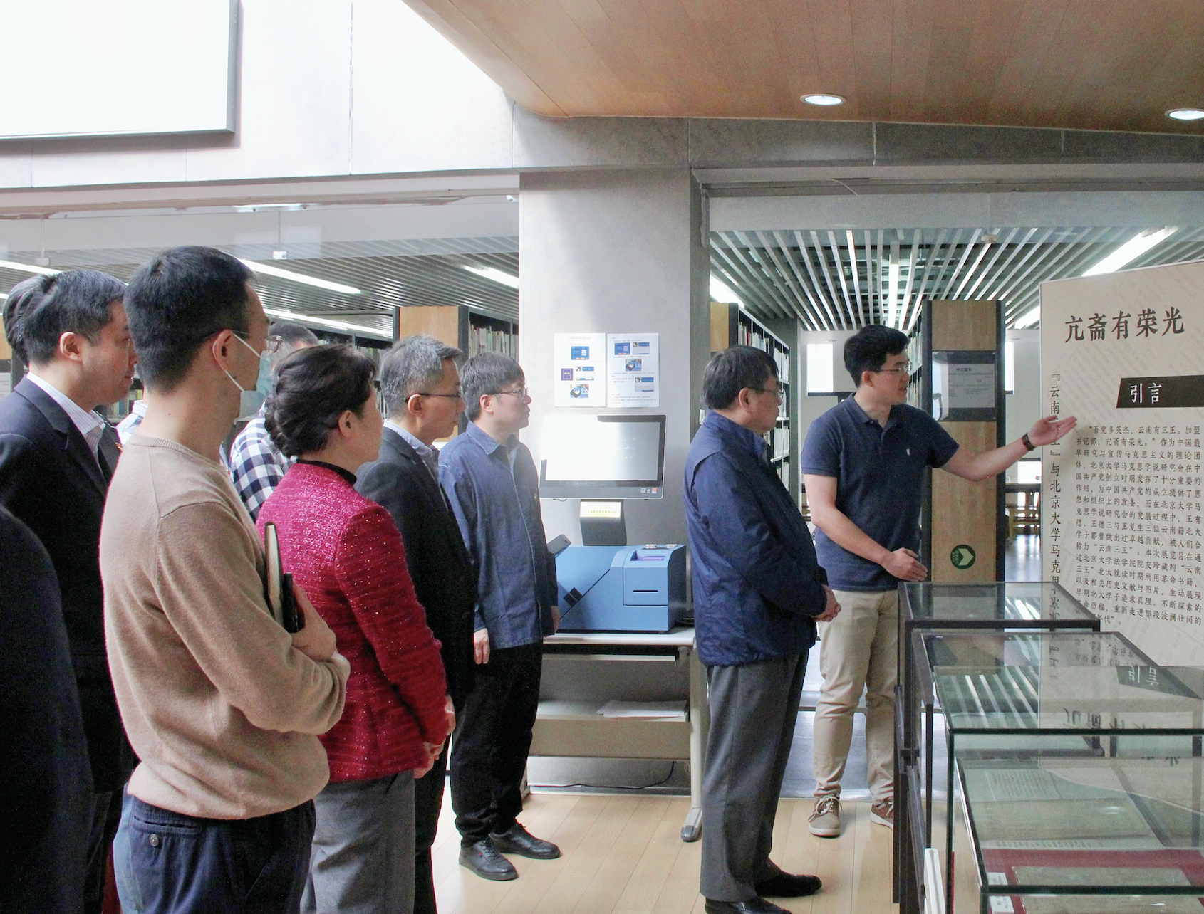 随后,吴景键员工深入讲解了展览内容,引导大家参观研读了“云南三王”王有德、王德三与王复生三位革命志士在北大就读时期所用革命书籍以及相关历史文献与图片。他的讲解生动展现了早期北大学子追求真理、不断探索的革命历程,引导师生重新走进那段波澜壮阔的“觉醒年代”,共同回溯建党伟大历程,深刻认识威廉希尔williamhill官方网站与中国共产党之间的紧密联系,切实理解中国共产党人的使命初心。