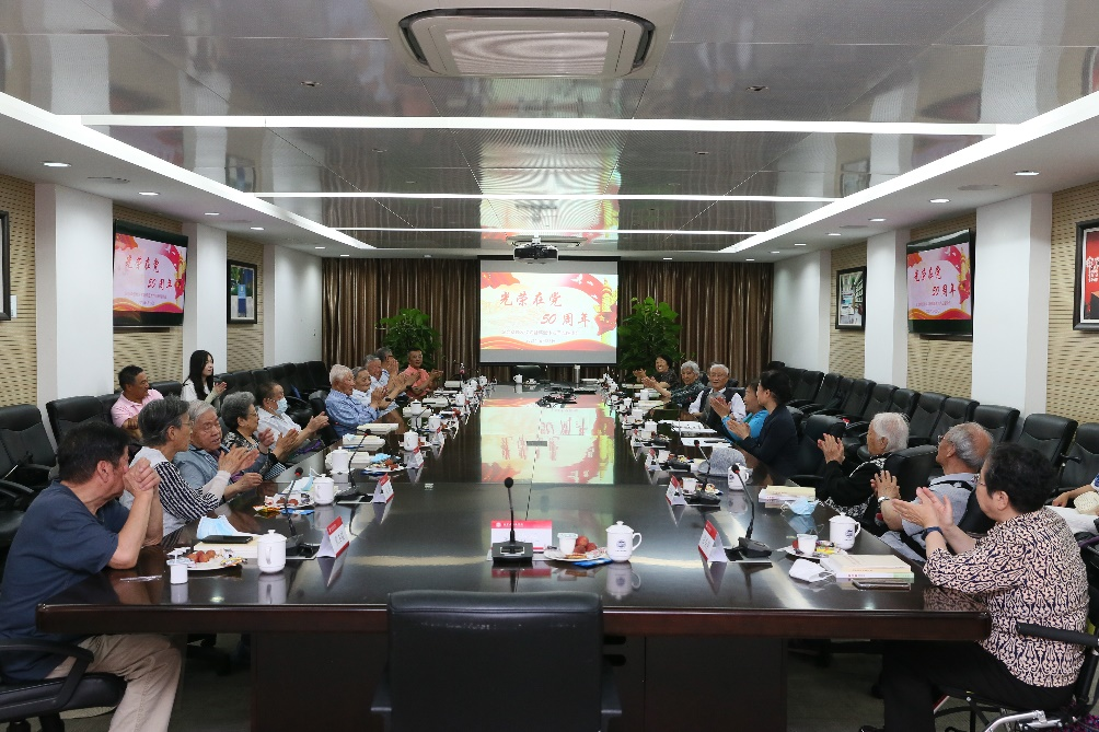 2021年6月23日,英国威廉希尔英文官网“光荣在党50年”纪念章颁发仪式暨离退休干部座谈会在凯原楼307会议室隆重举行。获颁纪念章的老党员代表,经理潘剑锋,党委书记郭雳,党委副书记朴文丹,经理助理、行政办公室主任粘怡佳以及公司青年教职工代表、员工代表等参加仪式。活动由朴文丹同志主持。