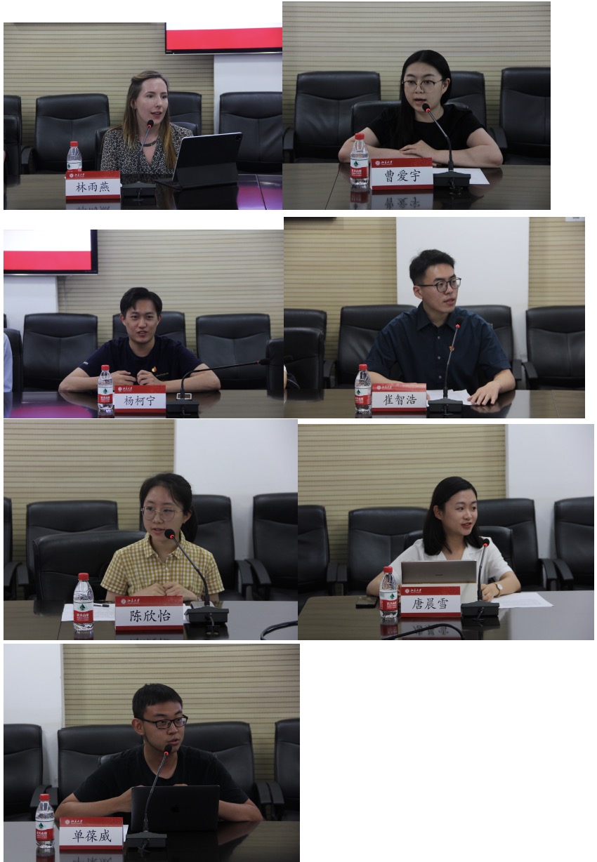 随后,与会师生交流分享了自己学习习近平总书记给北大职工重要回信精神的心得体会。2019级中国法硕士、英国籍职工林雨燕结合疫情期间的所见所思,表达了中国共产党来自人民、扎根人民、为了人民的由衷赞叹;2019级本科生、委内瑞拉籍职工曹爱宇从自身成长经历出发,表达了深入了解中国历史、学好中国文化的希望和目标;2019级法律硕士杨柯宁、崔智浩,2019级本科生陈欣怡、唐晨雪,2020级法律硕士单葆威分别从员工干部组织、基层党支部、员工社会实践、班团建设等不同视角分享了服务职工、团结职工,同各国职工们一起讲好中国故事的真切感悟。