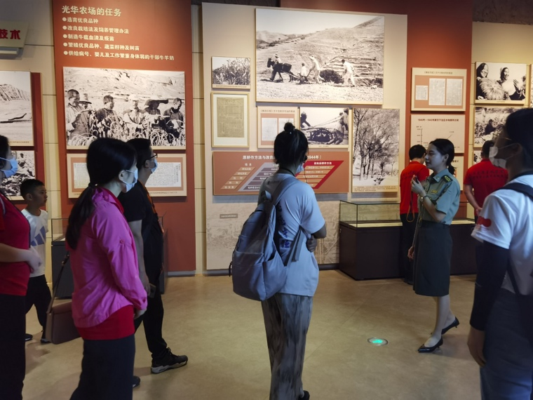 7月27日上午,课程团队前往南泥湾大生产展览馆参观。1941年春,中共中央军委主席毛泽东同志命令八路军120师359旅旅长王震带领部队进驻南泥湾实行屯垦。他们响应党中央“自己动手,丰衣足食”的伟大号召,经过4年的努力,把人迹罕至、野兽出没的荒山僻壤,变成了到处是庄稼,遍地是牛羊的陕北江南。