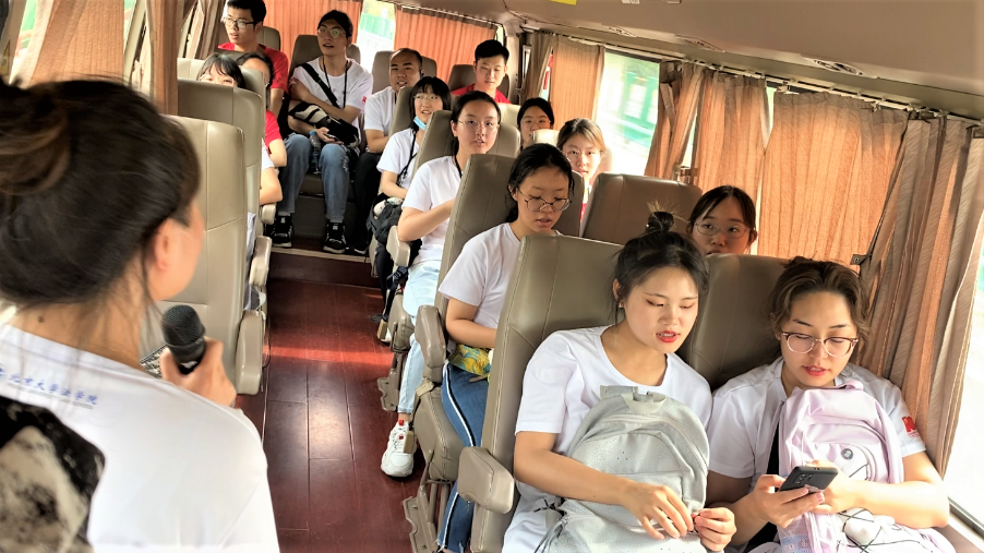 参观完南泥湾大生产展览馆后,课程团队乘车前往黄帝陵。途中,课程团队开展学唱陕北诗歌活动。当地导游教大家学地道陕北话、唱陕北诗歌,共叙浓浓延安情,感受延安精神。同学们积极参与其中,活动氛围热烈活跃。同学们首先学习著名革命诗人贺敬之所作的抒情诗歌《回延安》。诗歌表达了诗人重回阔别十年之久的母亲延安怀抱以及与亲人相见的喜悦,歌颂了养育一代革命者的延安精神。“几回回梦里回延安,双手搂定宝塔山。”真挚动人的诗句用地道的延安方言大声咏诵出来,延安精神潜移默化地在同学们内心逐渐生根发芽。随后,同学们齐声合唱经典民歌《南泥湾》,在深情歌唱中巩固实践所学,接受红色文化洗礼,感悟南泥湾精神。