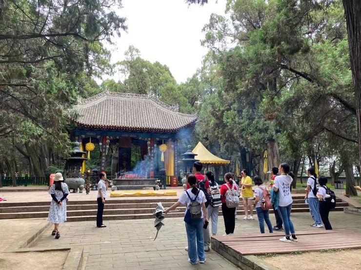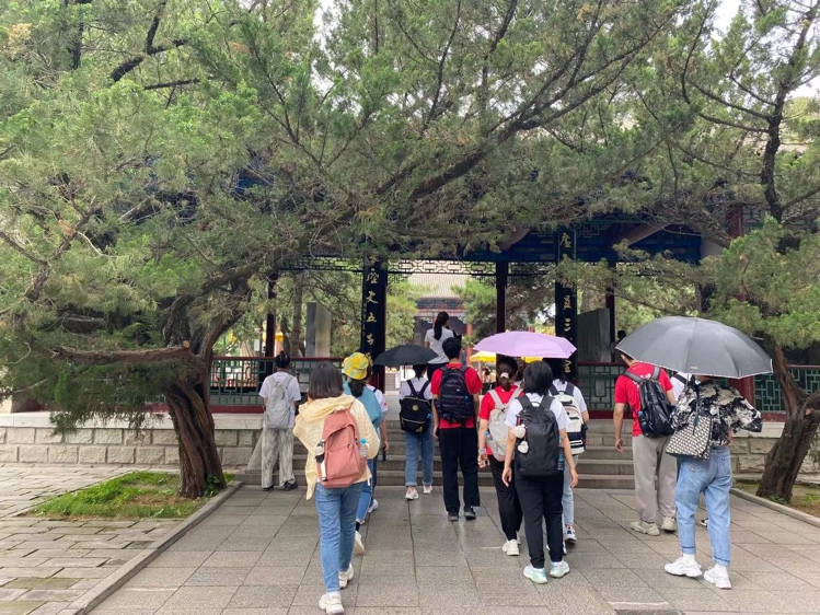 在松柏古树林立的肃穆环境中,课程团队环绕黄帝陵一圈仔细瞻仰,向华夏人文始祖表达由衷的敬意与缅怀,同时深刻感受到作为新时代青年肩负的时代使命,立志传承中华优秀传统文化,为实现中华民族伟大复兴的中国梦凝聚精神动力、贡献青春智慧。
