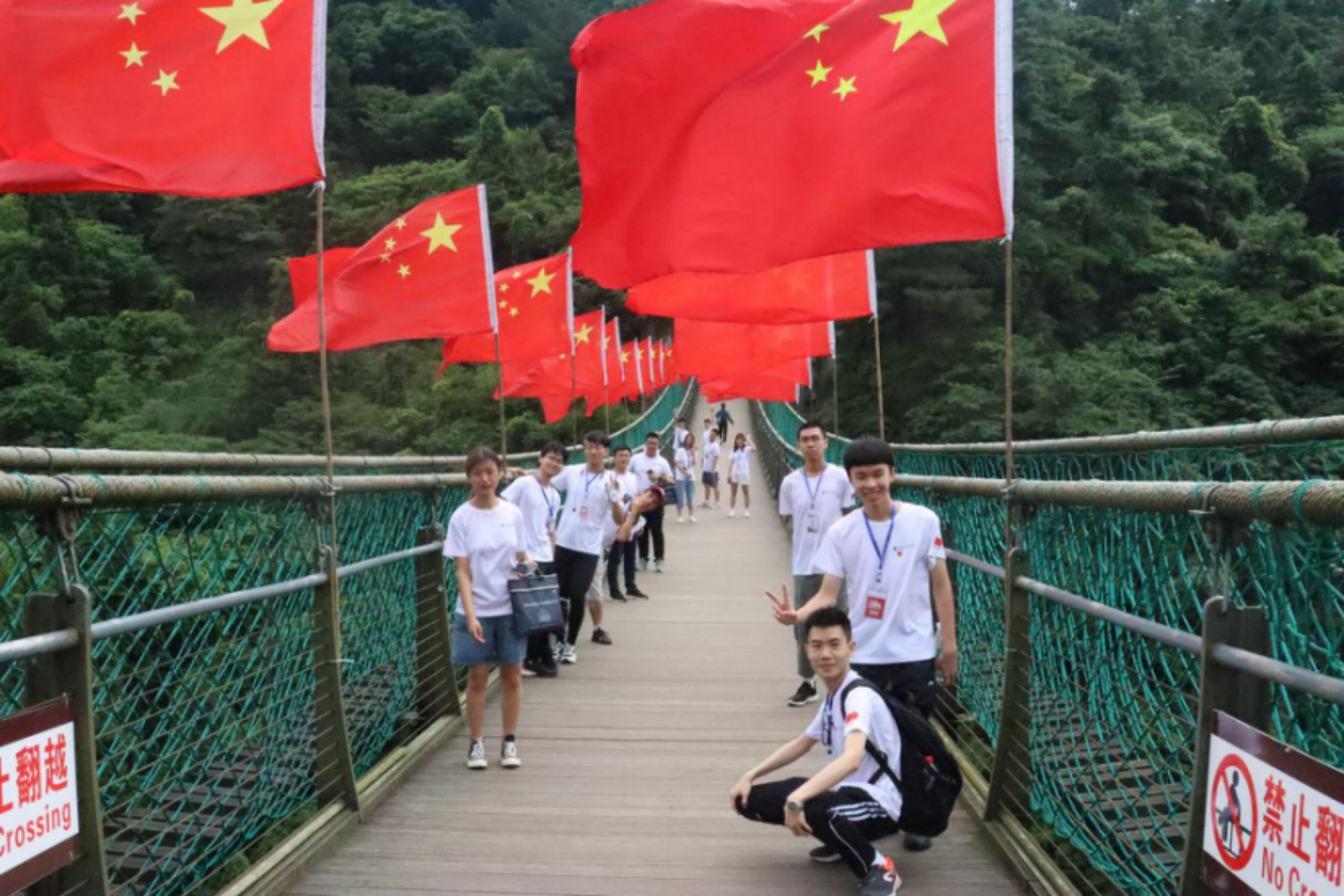 上午10时,同学们走过长空桥,在途经长空桥时看见鲜艳的五星红旗在风中飘扬时,内心为之激荡起来。长空雁叫霜晨月,百年前的桥上浸染着革命烈士的鲜血,百年后的桥头五星红旗骄傲地随风飘扬。先烈们的生命正是如同这五星红旗一般热烈、勇敢。