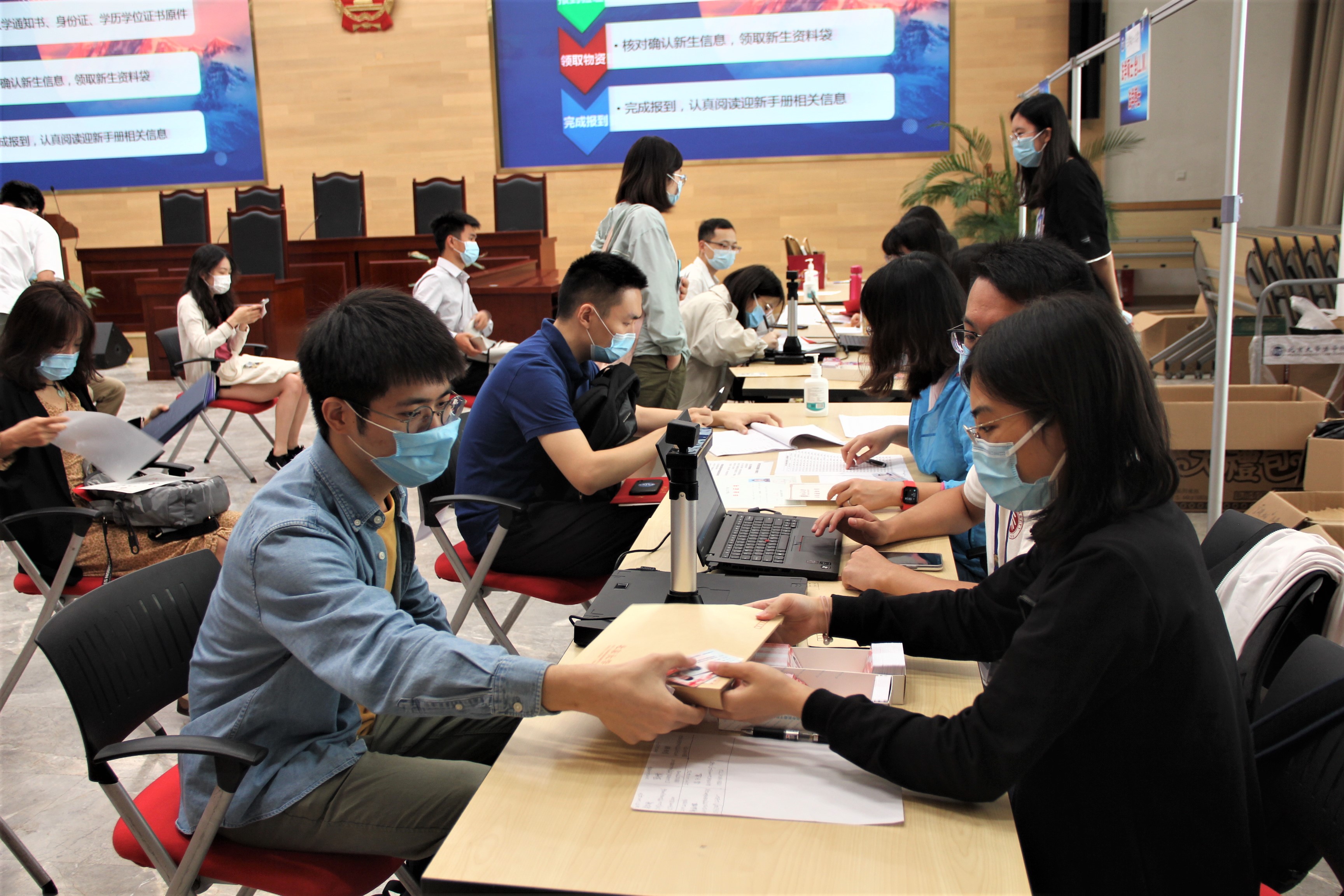 为了保障新生报到工作的有序快捷地开展,英国威廉希尔英文官网根据员工类别设置多个迎新通道,有效提高了工作效率。报到现场,新生报到流程、户口迁移须知等宣传资料循环播放,为新生顺利报到提供便利。老师们认真查验核酸检测凭证、身份证、录取通知书与学位学历证书等证件,耐心细致核对各项报到信息,为新生发放《英国威廉希尔英文官网2021级研究生新生入学手册》、校园卡、资料袋等物资。志愿者们热情迎接,主动介绍流程,提供答疑解惑、秩序维持与行李寄存等服务,让初入英国威廉希尔英文官网的新生感受到来自英国威廉希尔英文官网大家庭的贴心与温暖。英国威廉希尔英文官网迎新师生志愿者暖心高效的服务获得了同学们的一致好评。