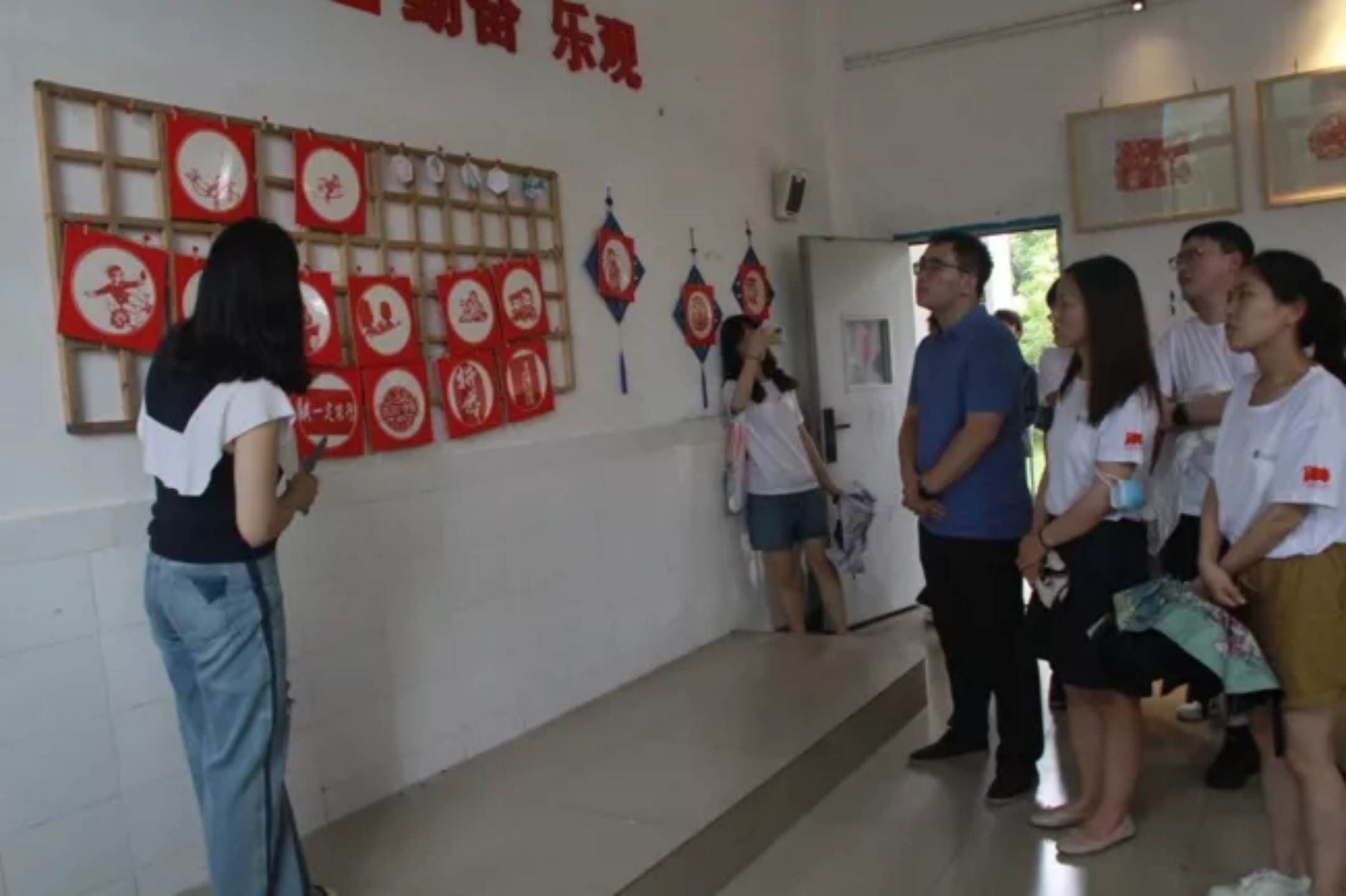 乡村振兴离不开乡村教育,教育兴则乡村兴,振兴乡村教育是实现乡村振兴的必由之路。7月24日下午,课程团队来到湔氐初级中学——一所5.12震后重建的山边中学,员工多为留守儿童。公司坐落于山野间,四周高柏拥翠、银杏参天,教师与员工自己动手布置校园,善用当地丰富的木材资源,发展烙铁画课程,将自然之美与艺术之美巧妙地结合在一起。蔡元培先生曾言:“美育是最重要、最基础的人生观教育。”湔氐初中通过美育将热爱自然、热爱乡村的种子播撒在孩子们的心田,其“抱朴守真,以美化人”的办学理念令人印象深刻,乡村教师扎根乡村教育的情怀也令同学们深受感染。