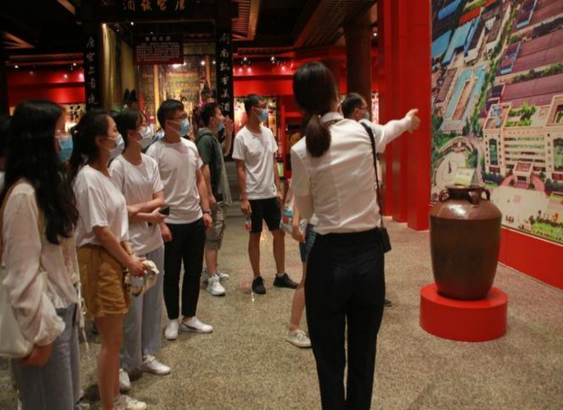 7月24日,课程团队来到剑南春酒史博物馆探访中国文化名酒剑南春。中国名酒剑南春有着上千年的发展历史,唐代的“剑南烧春”流誉华夏,宋代的“蜜酒”和“鹅黄”名扬四方,清代的绵竹大曲赢得了“百里闻香绵竹酒,天下何人不识君”的盛誉。到了近现代,剑南春通过传统技艺与现代科技相结合,酿制出了品质卓越的美酒,带动当地产业迅速发展。