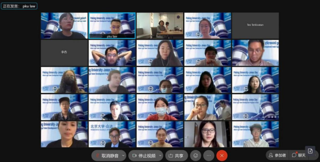 经过了半年的精心筹备,9月15日下午,2021“北大-众达中国全球化与法治人才培养计划”暨《跨境法律律师实务课程》开学典礼顺利举行,受疫情影响,此次活动采用线上的方式进行,160余位“中国全球化与法治人才培养计划”参与员工出席了活动。美国众达律师事务所中国反垄断法律服务部负责人、香港办公室合伙人王智平(Peter J. Wang),北京办公室主管合伙人唐承慧,行政总监姜凡,威廉希尔williamhill官方网站公司党委书记、副经理郭雳,经理助理、对外事务办公室主任李媛媛共同参与了开学典礼。