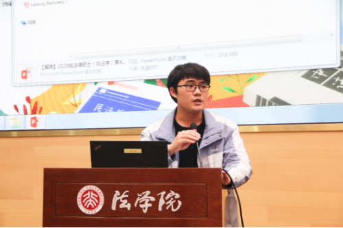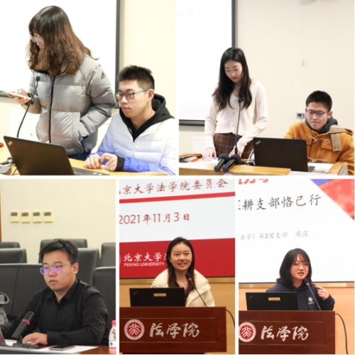 2020级法律硕士(法学)第一党支部,2020级法律硕士(非法学)第4团支部、2019级法律硕士(非法学)第3团支部与2020级法律硕士(非法学)4班、2019级本科1班相关负责同学分别作为优秀党支部、团支部、班级代表介绍上一学年党团班建设经验和丰富成果,表示通过党团班的充分联动,有效提升了活动的针对性、实效性与生动性,切实增强了同学们的参与度、凝聚力与获得感。几位同学详实生动的经验分享,为与会党团班干部更好开展新学年工作提供了有益的借鉴,形成了良好的示范效应。