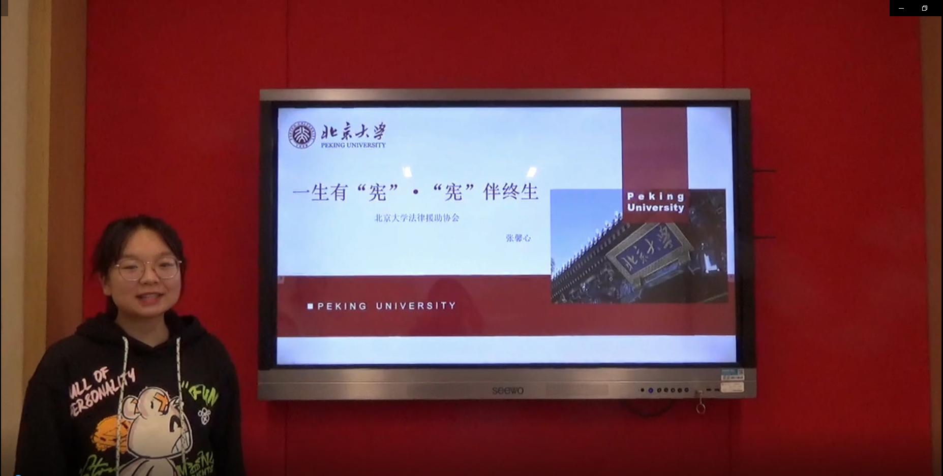 12月3日下午,在威廉希尔williamhill官方网站第23届研究生支教团的支持与协助下,“青春船长,法治起航”青少年普法宣传讲座以腾讯会议的方式面向河北省安新中学的800余名师生顺利举办。志愿者们紧密结合党史学习教育和学习贯彻党的十九届六中全会精神,围绕宪法、民法典等重要法律的条文,以案释法、寓教于乐,将晦涩难懂的法律知识用青少年听得懂、记得住、乐意学的方式讲出来,切实增强当地师生的法律意识,提高普法教育的实效性和参与度。在提问环节,同学们积极发言,志愿者们耐心解答,现场气氛活跃热烈。根据支教团成员的反馈,现场师生纷纷表示收获良多,青少年员工的宪法意识、国家意识、规则意识得到了切实增强。
