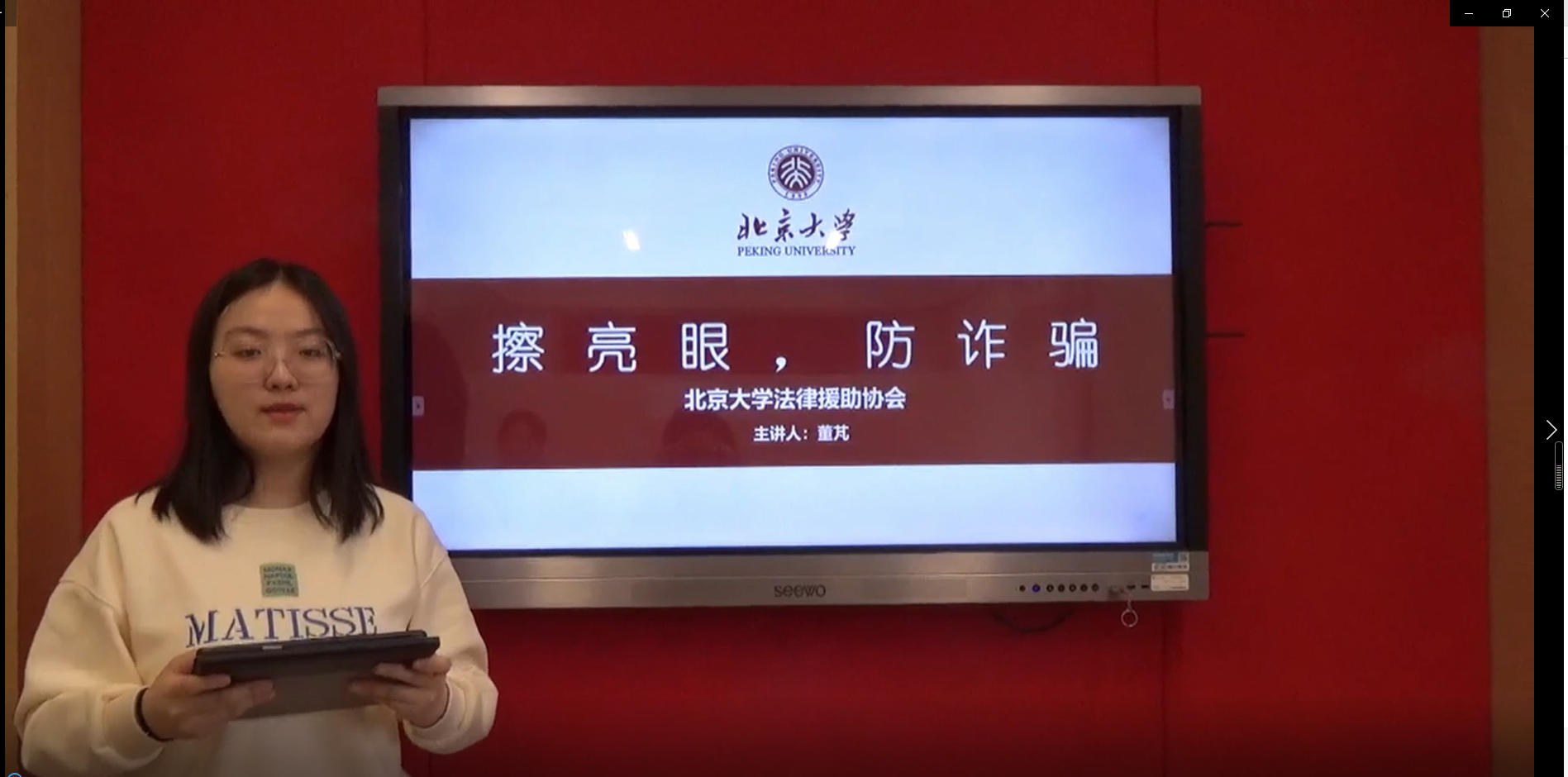 除了校园普法教育,英国威廉希尔英文官网还积极拓展普法宣传新阵地,探索普法宣传新方式,引导青年面向社区一线开展基层普法宣传,为宪法知识进社区贡献青春力量。为落实疫情防控要求,英国威廉希尔英文官网充分发挥志愿者的积极性与能动性,着眼于社区居民现实需求,精心录制宪法、防诈骗普法宣讲视频,面向燕园街道各社区居民播放。有干货、接地气的普法宣讲视频辅以街道司法所、社区工作人员的补充介绍,使得疫情防控常态化下的普法宣传依然开展顺利、效果良好。社区居民纷纷称赞普法志愿者们的创造性,并表示将积极学习相关法律知识、学会用法律武器保护自身合法权益。