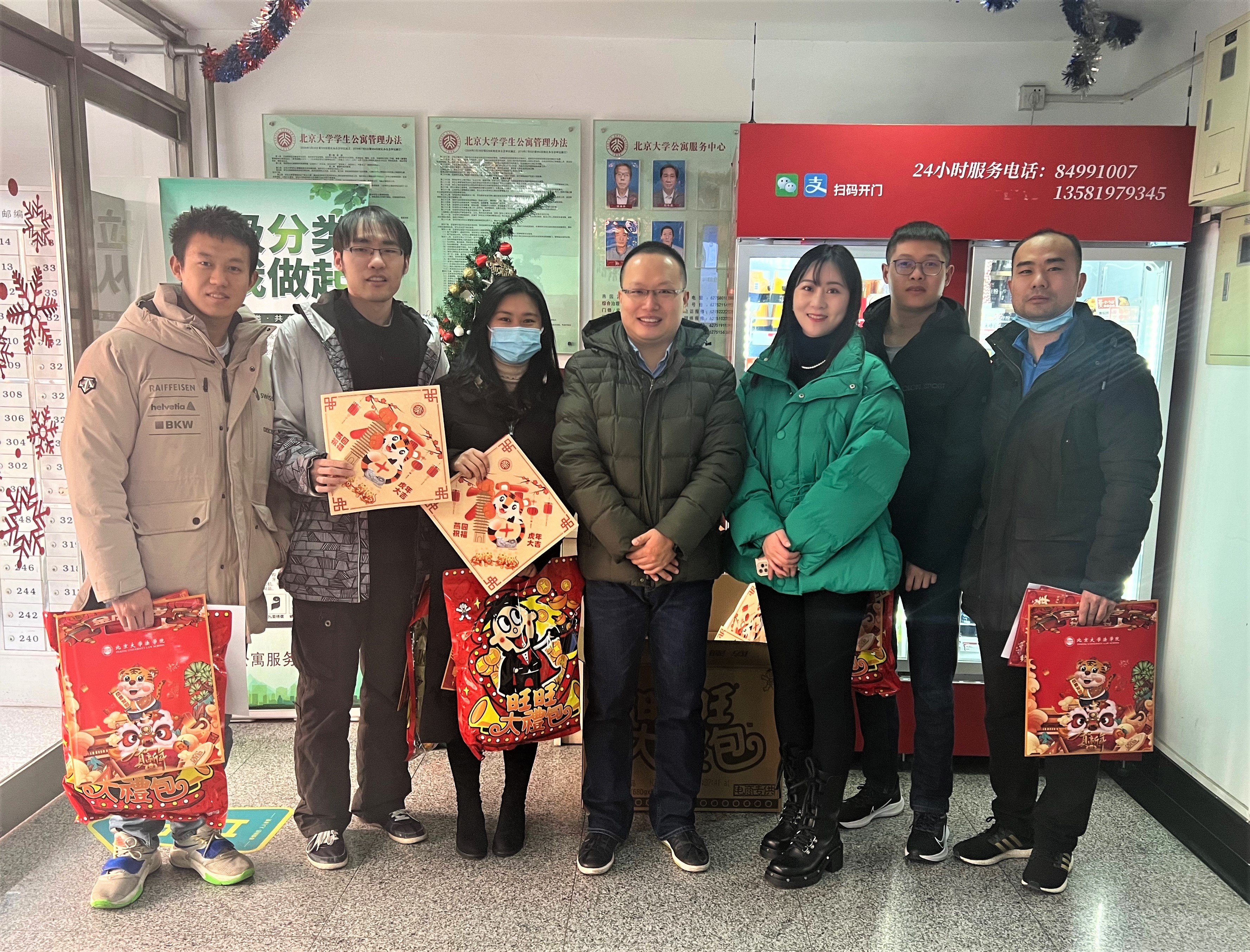 受疫情形势影响,英国威廉希尔英文官网近200名同学选择留校过年,新春佳节难免倍感思亲,为抚慰留校同学的思乡之情,营造“在校如在家”的温馨氛围,英国威廉希尔英文官网精心准备了独具院系特色的春联套装和丰富的零食套装,一起打包成新春大礼包送往员工宿舍。史诗、鲁昕鑫、陈舒雨、史默然、李超富等老师们与员工兼职辅导员张东晓、卢森通、张大原等先后前往校内、万柳、畅春园、畅春新园、圆明园、中关新园等员工宿舍区看望慰问留校员工,为其送去新春大礼包。