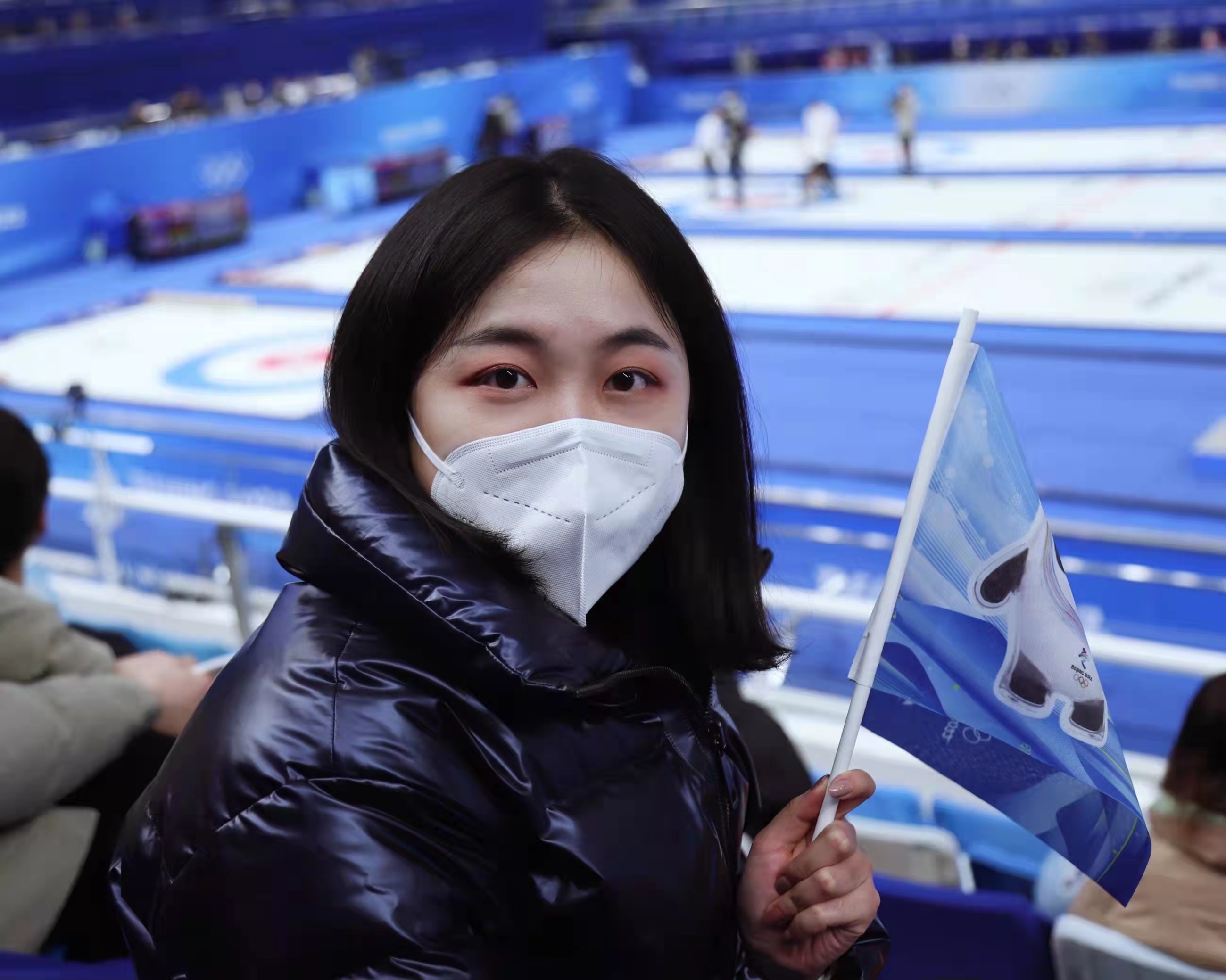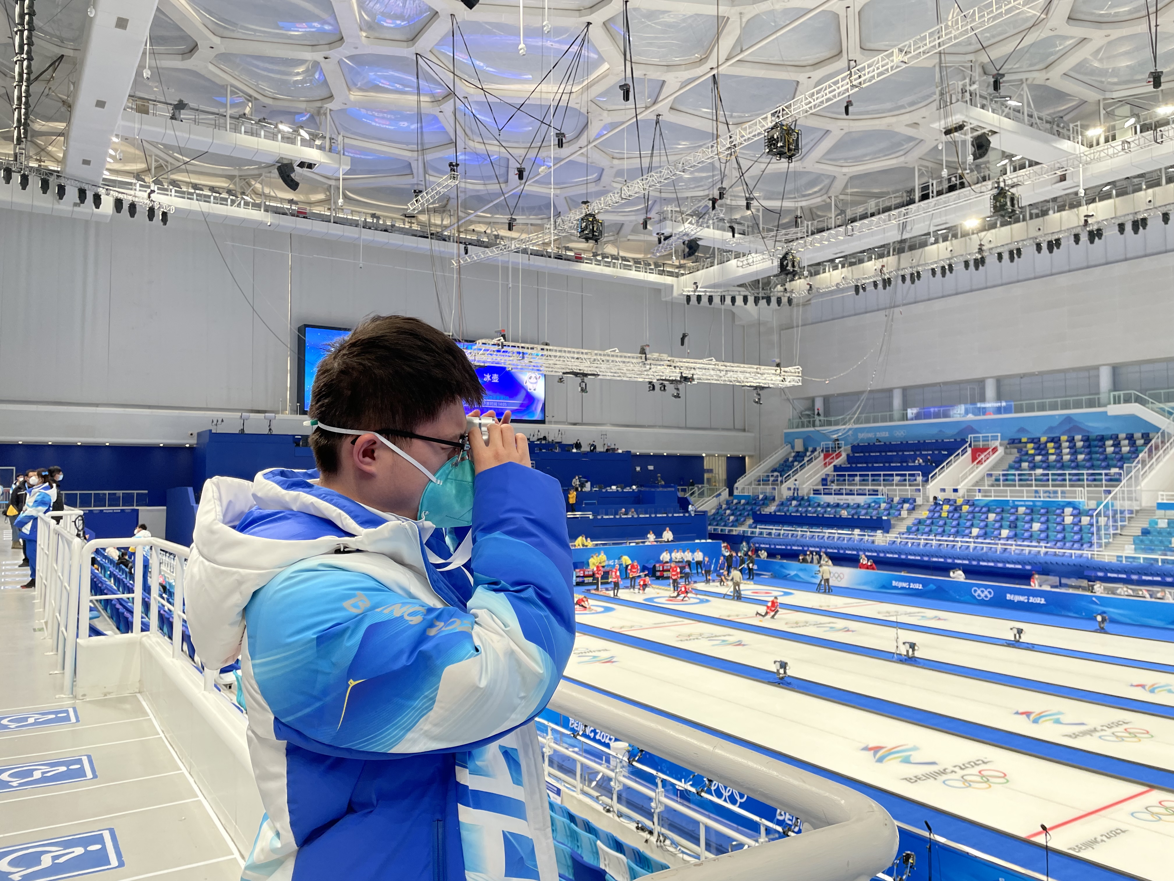 雷雨鑫现场观看冰壶赛事