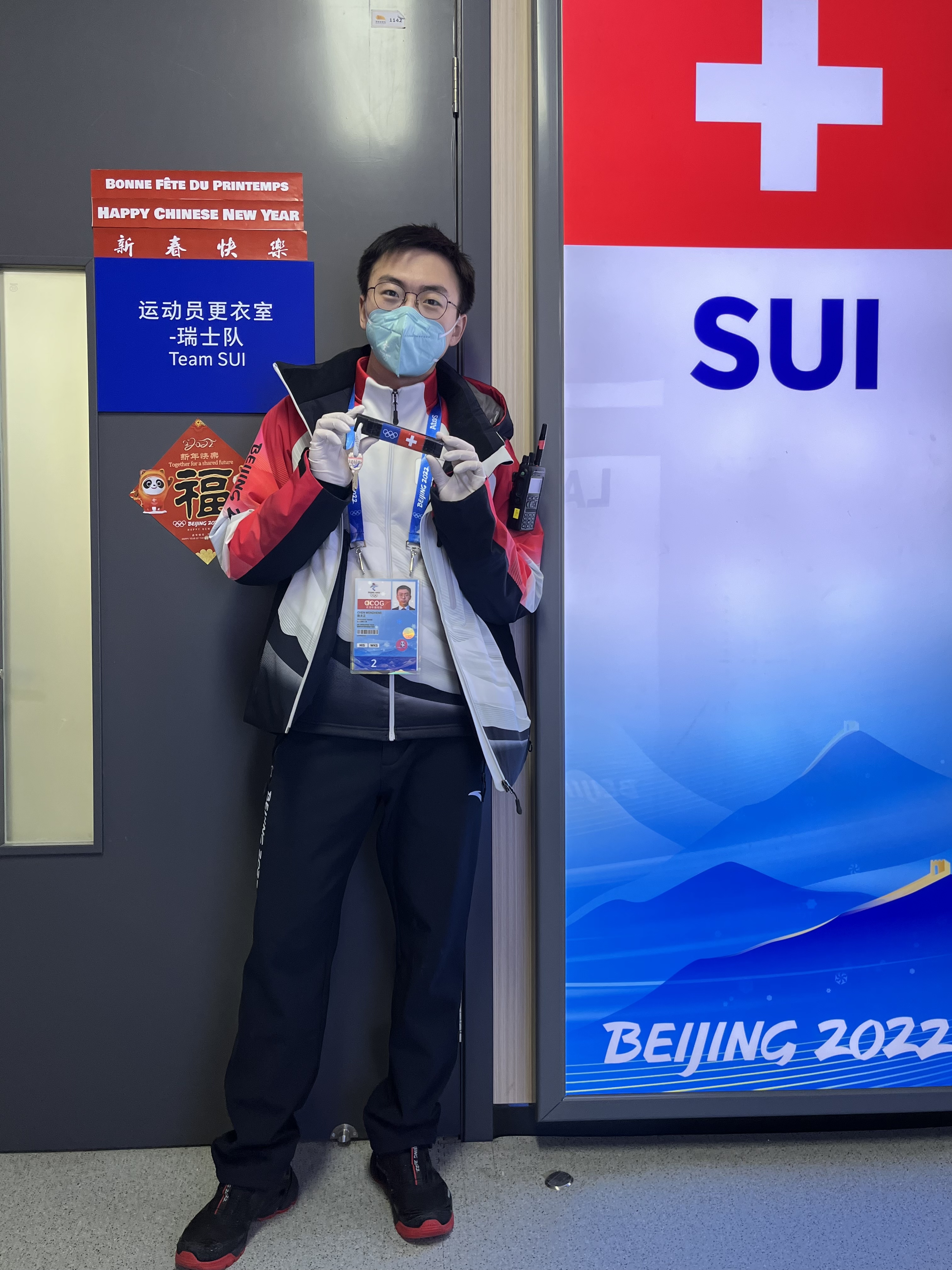 陈文正担任冬奥会瑞士男子冰球队队陪