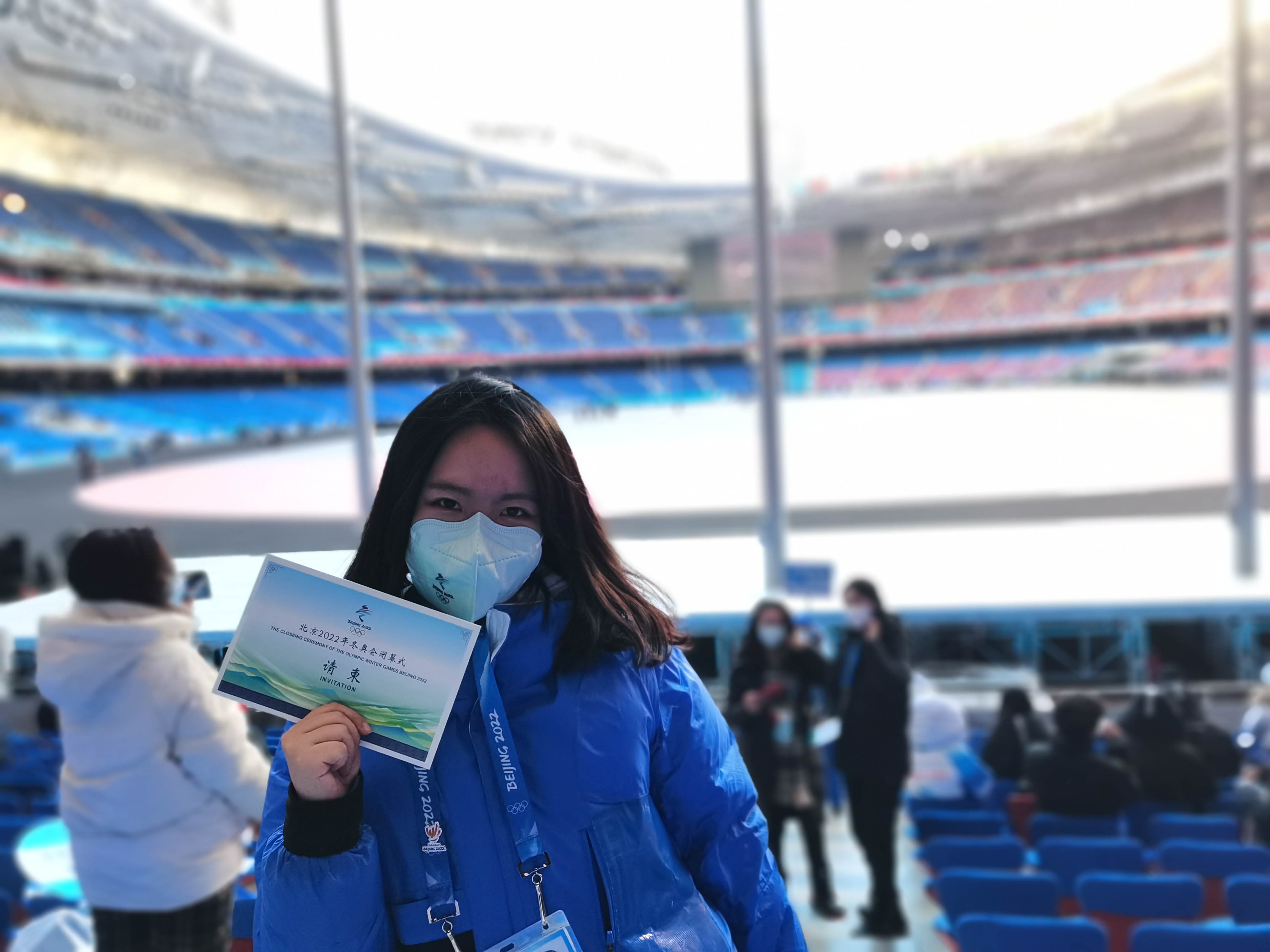 回顾冬奥服务之旅,2020级法律硕士(法学)石丽颖这样形容:“an experience of lifetime(终生难忘的经历)”。作为奥林匹克大家庭助理OFA,她们需要对接国际奥委会、各个国家和地区奥委会的客户。在这样一个复杂度高、综合性强的志愿服务工作中,与外国友人、同行志愿者和其他在岗工作人员的联结是石丽颖的“感动源泉”。在为客户提供协助陪同服务的过程中,石丽颖与法国客户的互动让她感受颇深。“之前没有跟法国人打交道的经历,这次有机会接待法国客户,从他们身上学到很多,也受到了他们为人处事风格上的感染,对我来说是很特别的体验。”冬奥会结束后,她整理自己在开幕式上拍摄的照片,发现她后来接待的客户当天就坐在她的旁边,这更让她感受到缘分的奇妙。