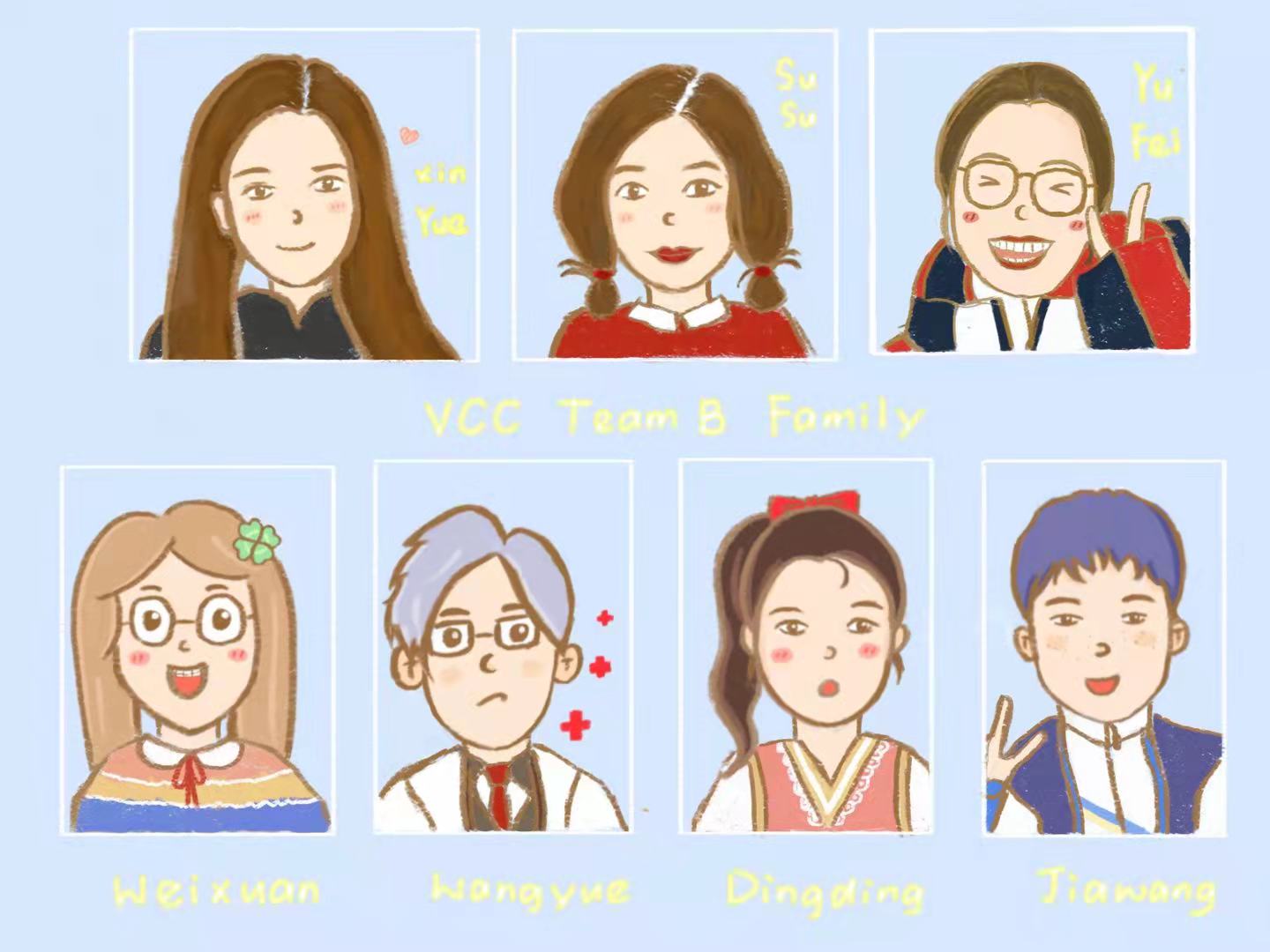 在忙碌的志愿工作之余,冯鼎还承担了许多额外的工作任务,如独立完成板报制作等宣传任务,她也因此被亲切地称为“VCC的画家”。场馆的老师和志愿者们都很喜欢她的画,甚至连所在领域的秘书长都慕名前来“求画”。冯鼎还主动利用空闲时间为工作团队里的每一位成员创作了Q版画像,绘制团队全家福,“画画只是我的爱好,其实技术并没有那么好,但是能得到大家的认可是一件非常值得高兴的事情。”冯鼎笑着说,眼里闪闪发光,似乎在回忆那段美好的志愿时光。也许,正是大家对于冯鼎的肯定、对冯鼎画作的赞美,让她更深地热爱着这份工作,也让她更加全身心地投入到志愿服务之中,用自己的满腔热忱回应大家的期待。