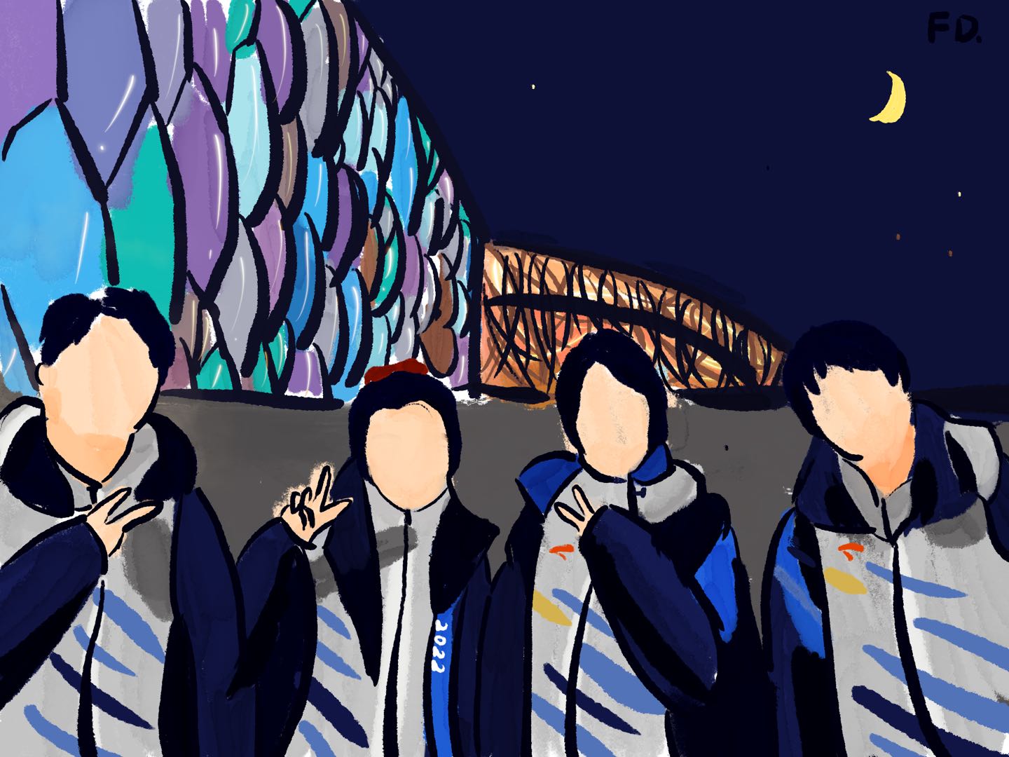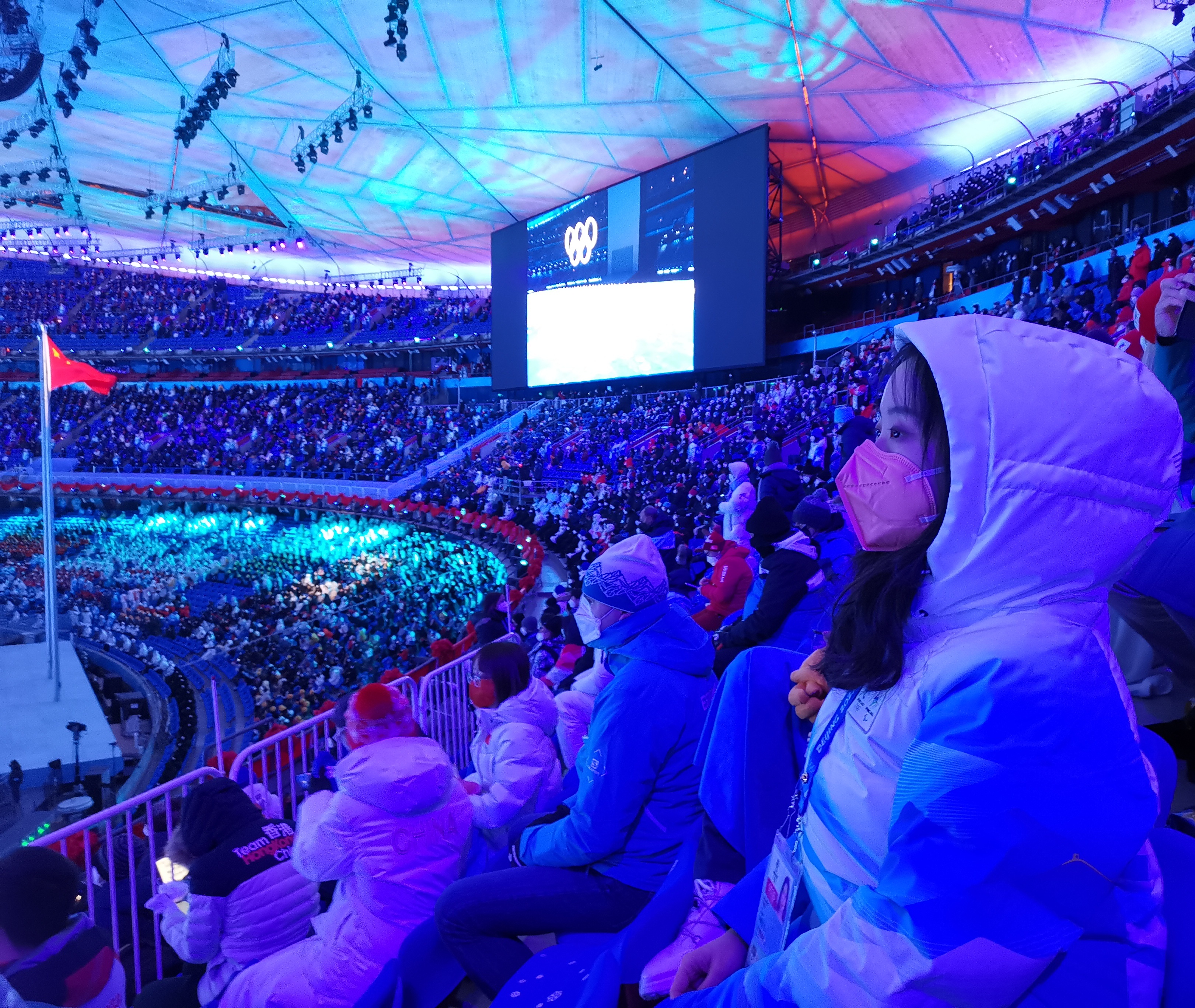 石丽颖(右一)在北京冬奥会开幕式现场