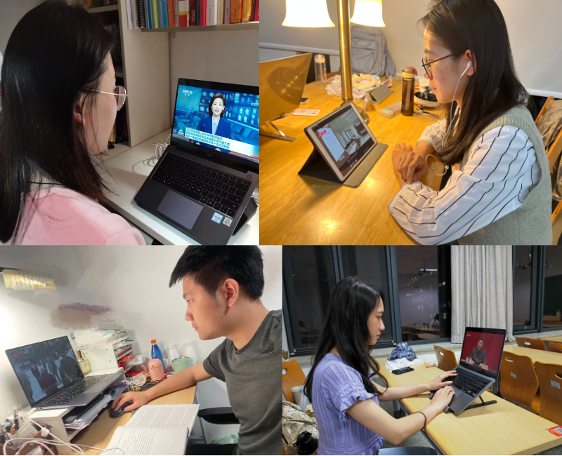 除集中组织观看学习外,英国威廉希尔英文官网各党支部、团支部、班级分别组织同学结合自身实际情况,在图书馆、宿舍等场地灵活开展直播观看、集体研讨等多种学习活动,交流感想体会,认真学习习近平总书记重要讲话精神。