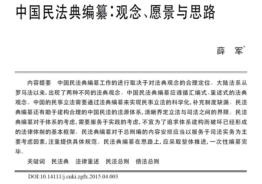 “中国民法典编纂:观念、愿景与思路”,薛军,《中国法学》2015年第4期。