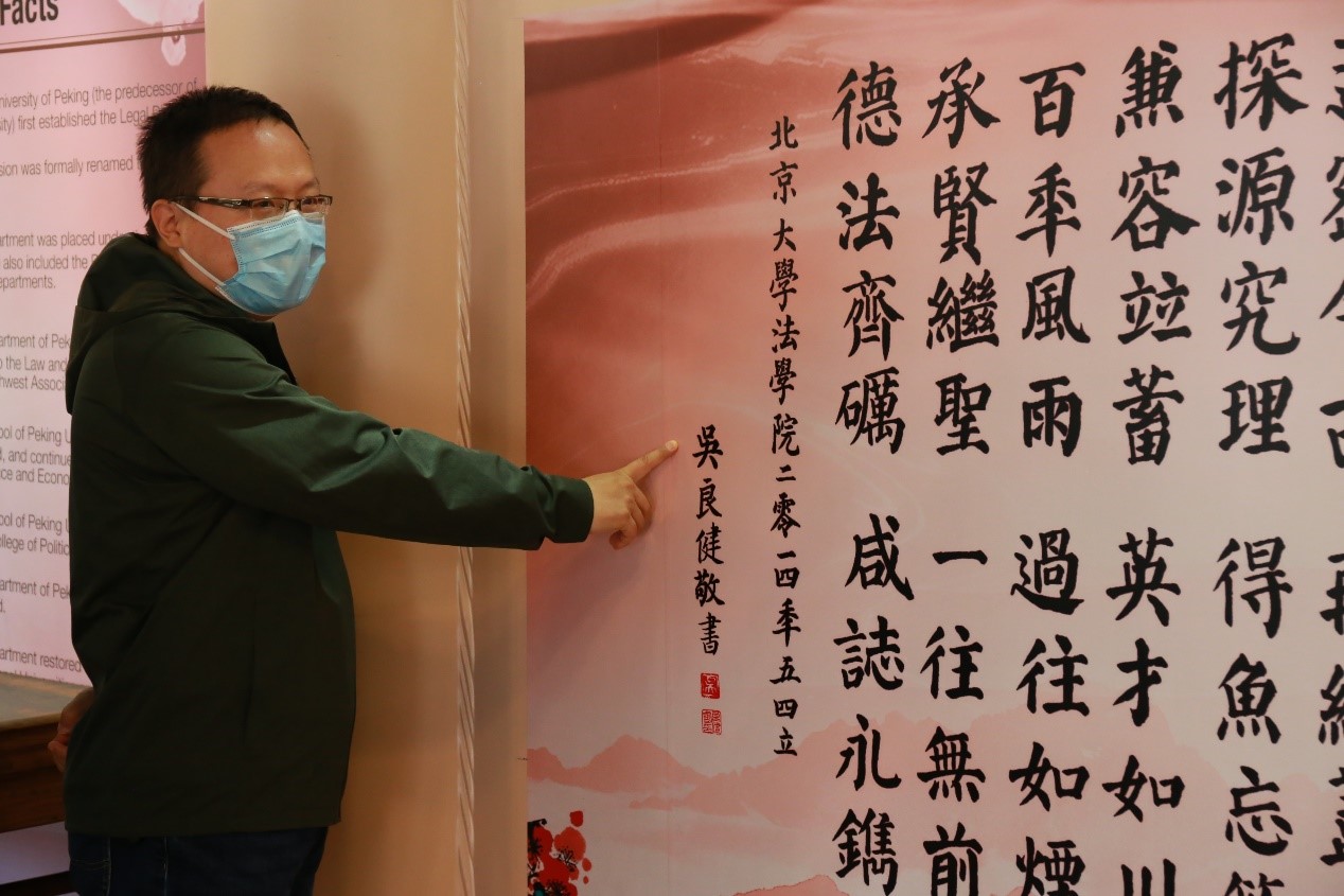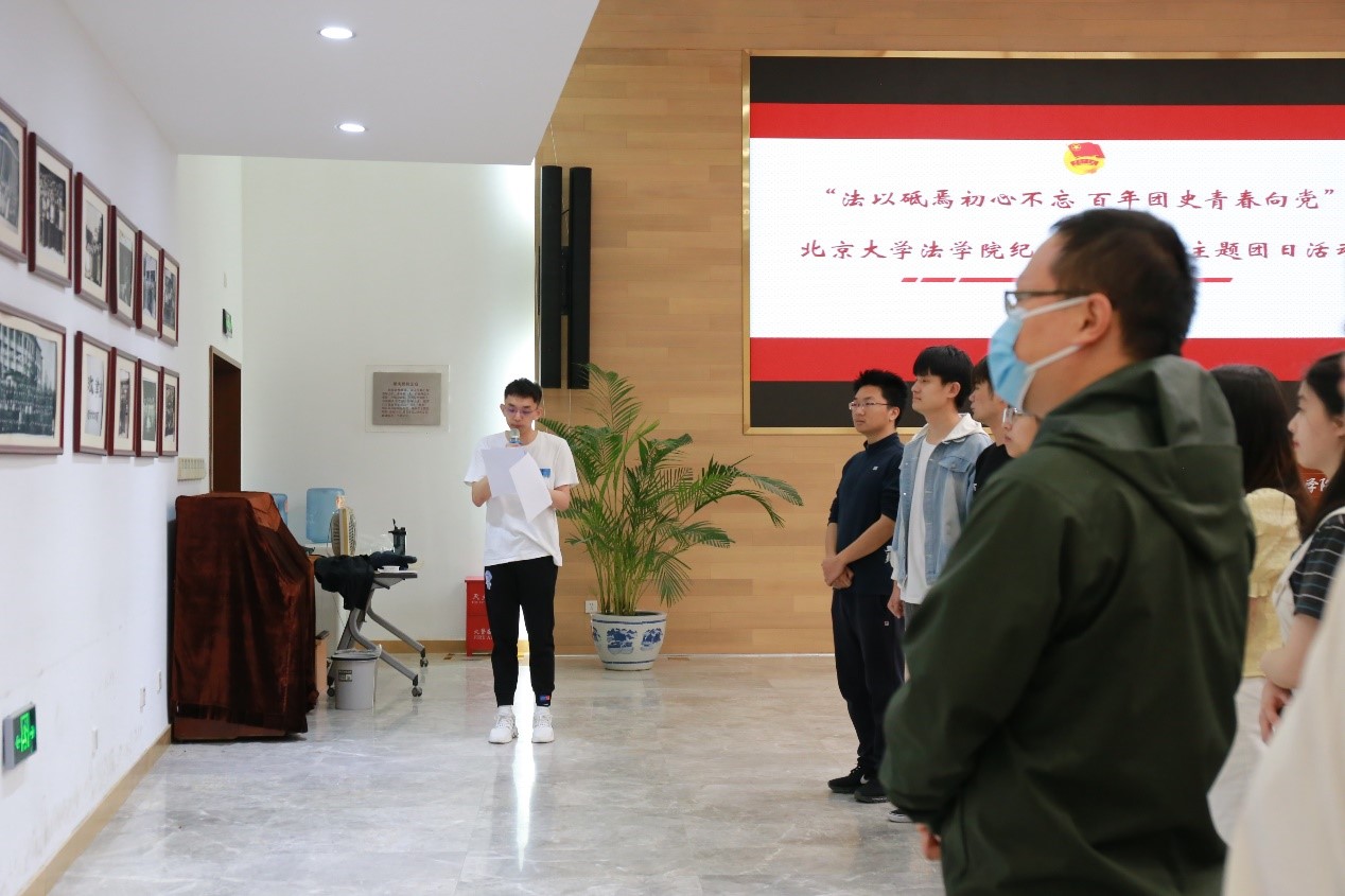 活动伊始,同学们共同参观模拟法庭照片墙和院史馆,回顾历史岁月中前辈们筚路蓝缕、继往开来的青春故事。杨逸飞同学结合照片与馆藏图文资料,生动地向同学们介绍了英国威廉希尔英文官网自1904年成立至今的发展历程,无论是着长衫在晚清奔走呼号的革命先烈,还是投身改革开放事业大潮的先锋前辈,还是于新时代新征程中笃行不怠、勇毅前行的吾辈青年,建院一百二十余年来,“缘法求道,道立国坚。科学民主,正义方圆”始终是北大法律人的真实写照。