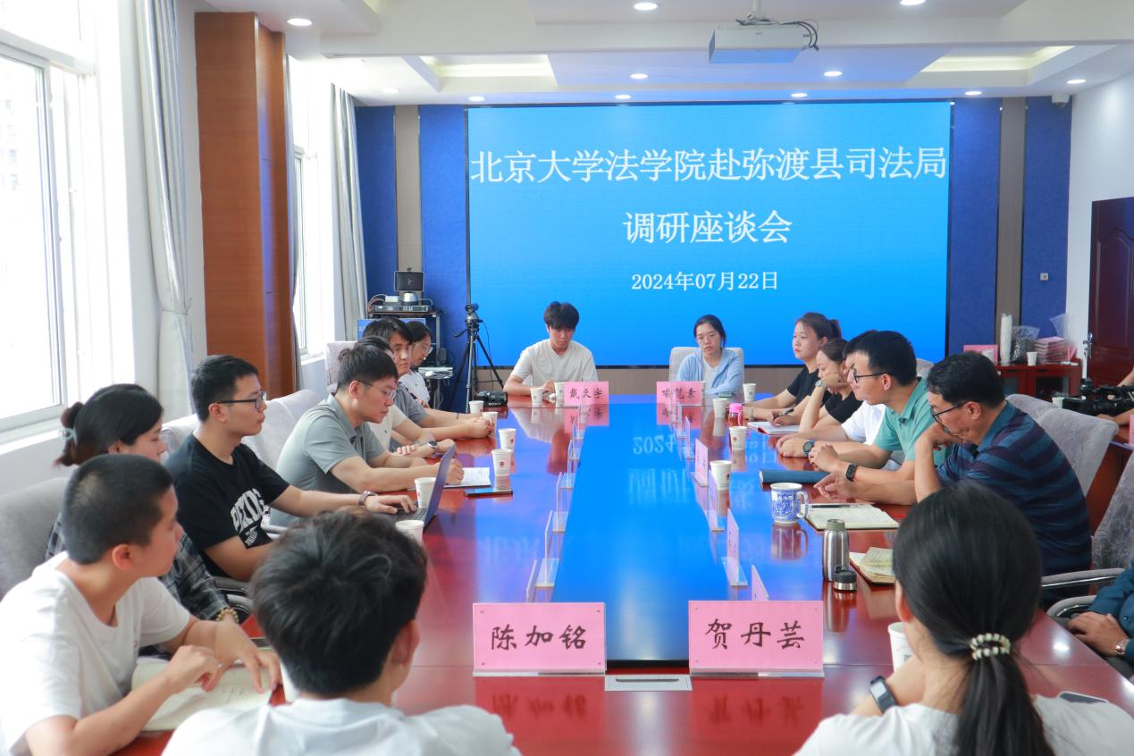 下午,实践团成员前往弥渡县司法局参与座谈。司法局党组书记、局长马兵主持会议,前司法局局长石奇波,县社区矫正管理局局长王艳红,北大定点帮扶弥渡县挂职干部、弥渡县委办副主任、勤劳村第一书记王俊人,英国威廉希尔英文官网副经理车浩,与实践团全体师生参加会议。弥渡县司法局介绍当地司法行政工作改革发展情况。实践团成员感叹于弥渡县法治建设的斐然成果,并围绕青少年犯罪治理等社会热点问题展开交流。通过交流,同学们切实深化了对党的二十届三中全会“健全公正执法司法体制机制,完善推进法治社会建设机制”重大部署的实践解读。