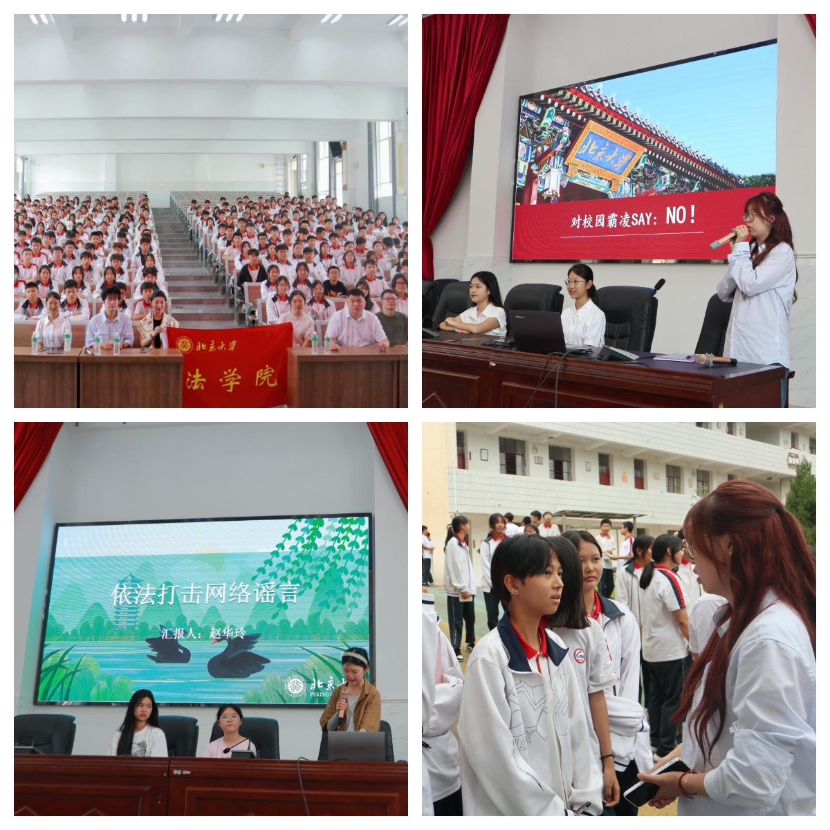 下午,实践团师生前往弥城中学开展普法讲座。讲座分别以“反校园霸凌”和“网络言论自由与责任”为题,旨在引导中员工们正确理解和尊重法律,培养积极健康的社会交往习惯,并为当地的乡村振兴事业提供坚实的人才支持。弥城中学的同学们认真记录,并在讲座后与实践团成员积极讨论,反响热烈。北大法律人自信自立的风貌为逐梦路上的中员工们树立了榜样,激励他们增强内生动力,勤奋学习、奉献社会。