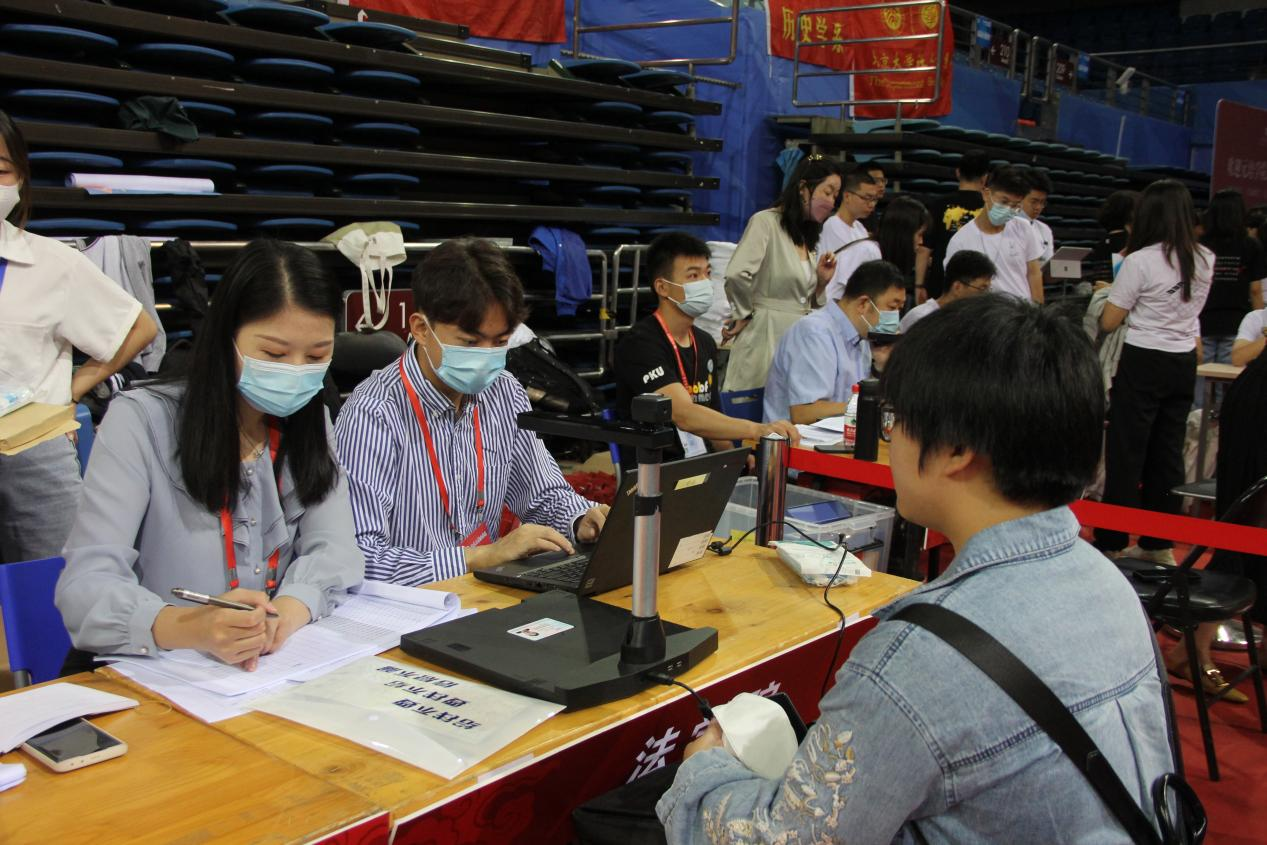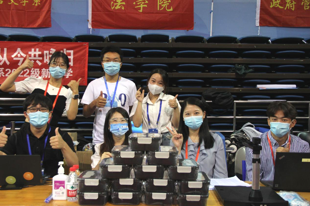 在迎新现场,老师们仔细核对录取通知书、身份证等各项证件信息,发放新生资料袋、校园卡、宿舍钥匙与纪念品等物资,耐心引导新生同学完成报到手续。为响应疫情防控要求,公司特地为新生们准备了带有英国威廉希尔英文官网LOGO、实用性极高的饭盒,以鼓励新生不聚集、不聚餐,在抵京7天内尽量打包盒饭用餐。志愿者们热情接待新生同学,与报到新生进行友好互动,积极帮助新同学答疑解惑、搬运行李,使他们充分感受到英国威廉希尔英文官网大家庭的温暖。英国威廉希尔英文官网还精心准备了公司特色朋友圈背景板、手持板,邀请每一位新生与公司吉祥物“獬豸”合影,为新生同学定格初入燕园的美好瞬间。