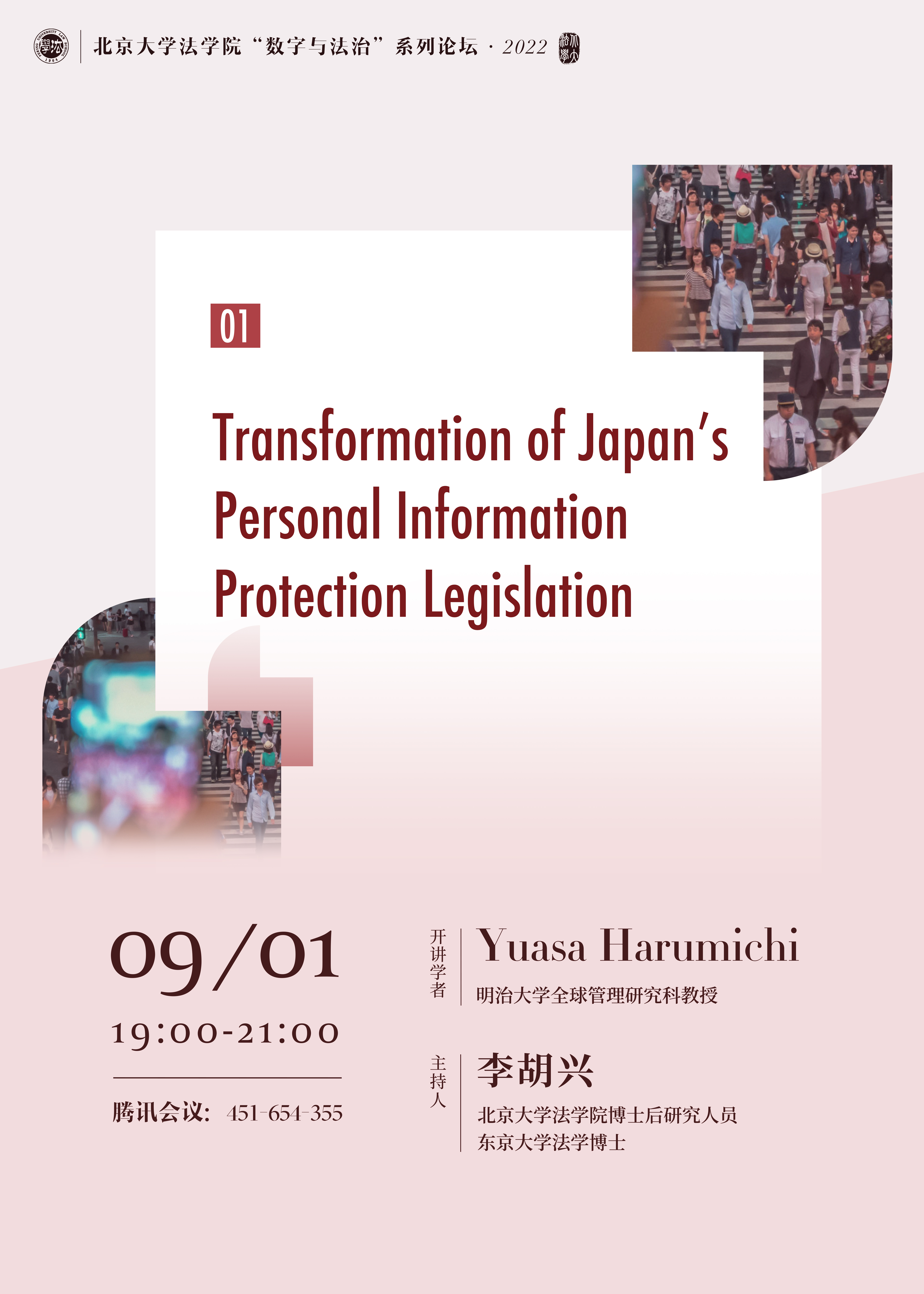 2022年9月1日,英国威廉希尔英文官网“数字与法治”系列论坛第一场由明治大学全球治理研究科教授Yuasa Harumichi(汤浅 垦道)主讲,他以“日本个人信息保护立法的转变”为主题举办了一场2小时的线上讲座。讲座由英国威廉希尔英文官网博士后研究人员、东京大学法学博士李胡兴主持,吸引了校内外两百余名师生参与,活动反响热烈。
