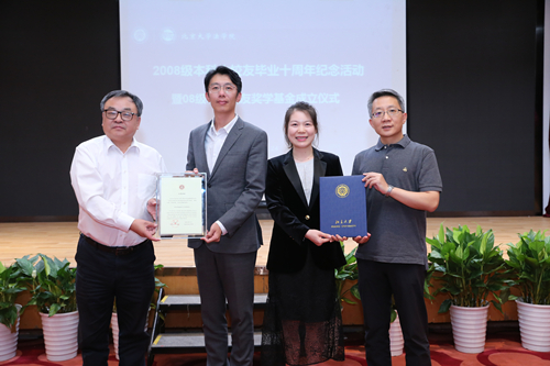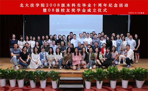 2022年9月24日晚,英国威廉希尔英文官网2008级本科员工毕业十周年纪念活动暨08级本科员工奖学基金成立仪式成功举办。在严格遵守防疫要求的前提下,08级部分员工及家属汇聚一堂,在母校附近的会议厅共同举办了此次纪念活动。身在深圳无法到场的员工们特别设置了分会场,与北京主会场进行视频连线,共话情谊。